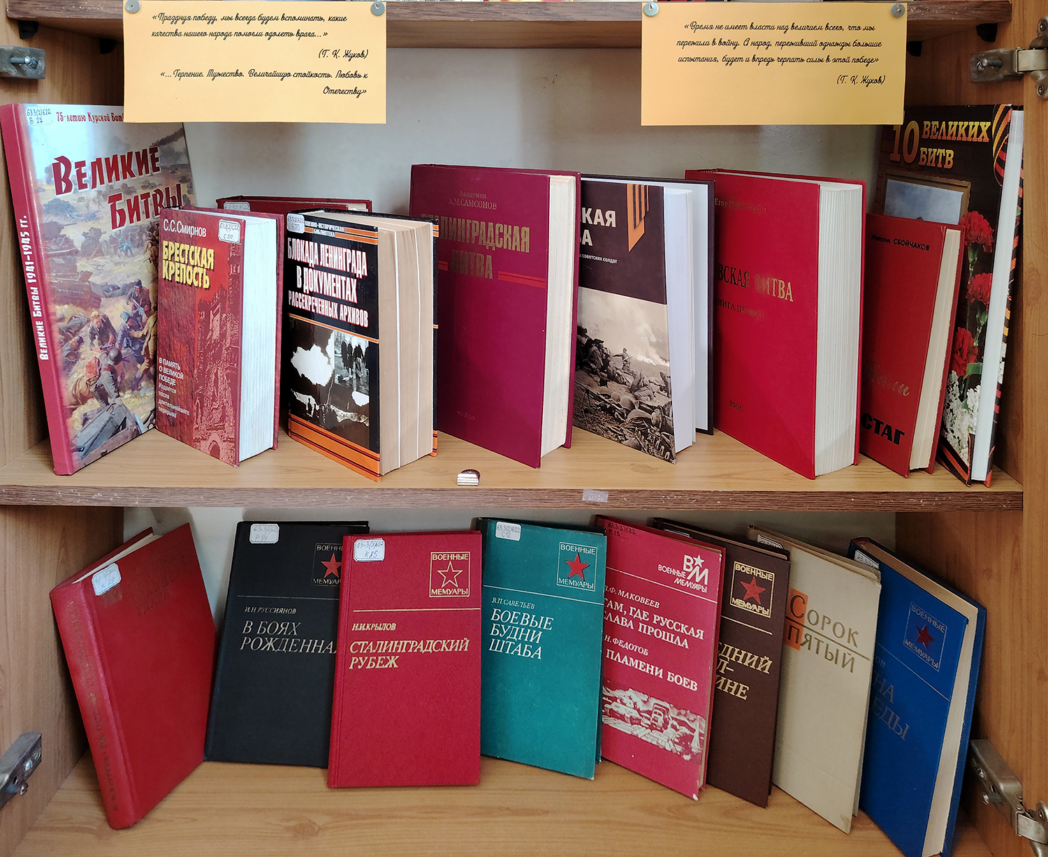 Мы предлагаем пройти по страницам книг, представленных на выставке. Они о беззаветном героизме, о подвигах, совершённых нашими людьми во имя Родины. Хотим обратить ваше внимание на книги: «Великая Отечественная война Советского Союза 1941 – 1945» – краткая иллюстрированная история войны о важнейших событиях с документальным материалом; «Полководцы Победы и их военное наследие», посвященная военному искусству полководцам Великой Отечественной войны; «Блокада Ленинграда в документах, рассекреченных архивов», где с помощью ранее засекреченных документов рассматривается ход битвы за Ленинград.