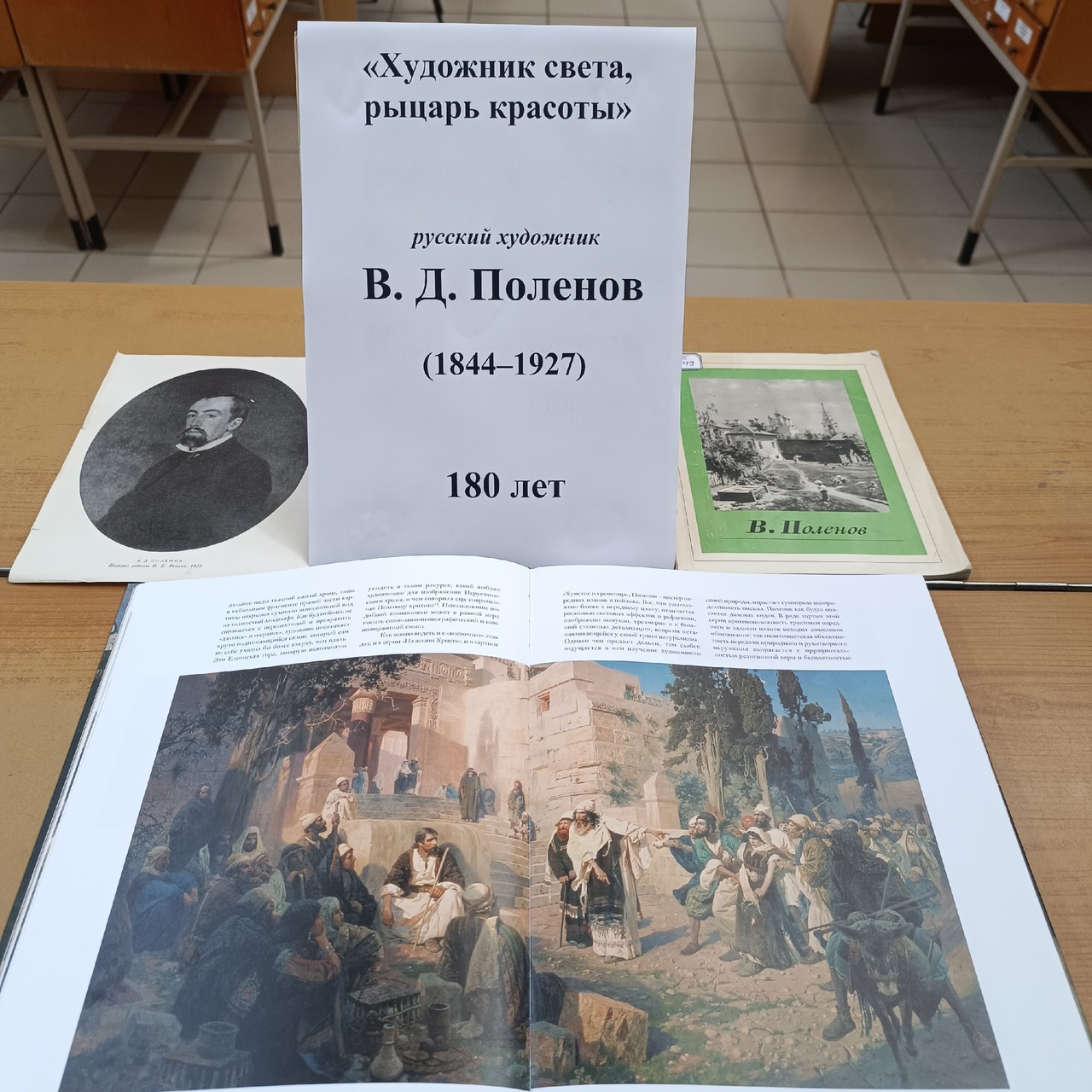 1 июня исполняется 180 лет со дня рождения известного русского живописца Василия Дмитриевича Поленова. К этой дате в читальном зале Орловской областной библиотеки им. И. А. Бунина с 1 по 30 июня 2024 года работает выставка литературы «Художник света, рыцарь красоты».