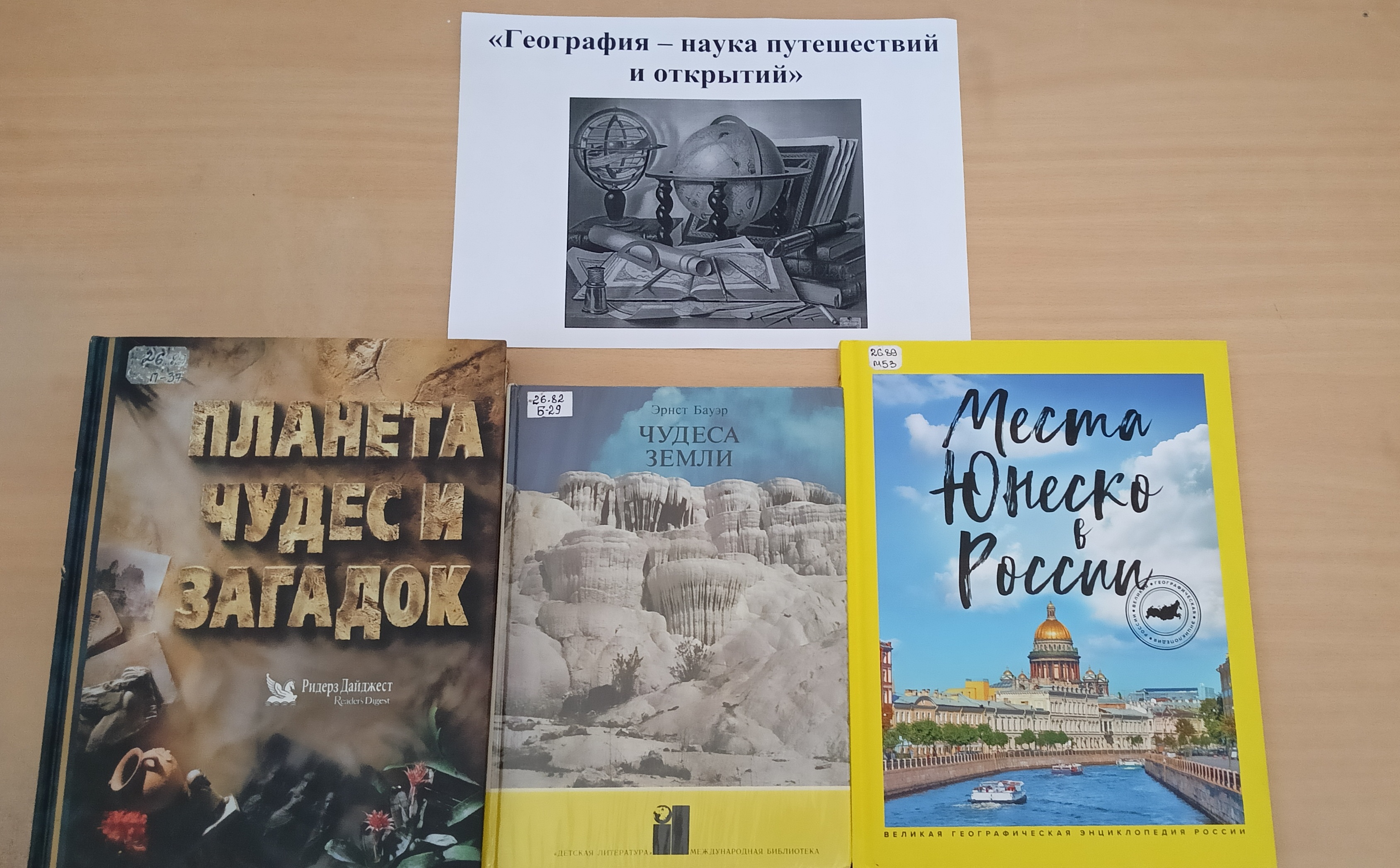 С 1 по 31 июля 2024 года в Орловской областной библиотеке им. И. А. Бунина в рамках цикла «Наука на книжной полке» организована выставка «География – наука путешествий и открытий».