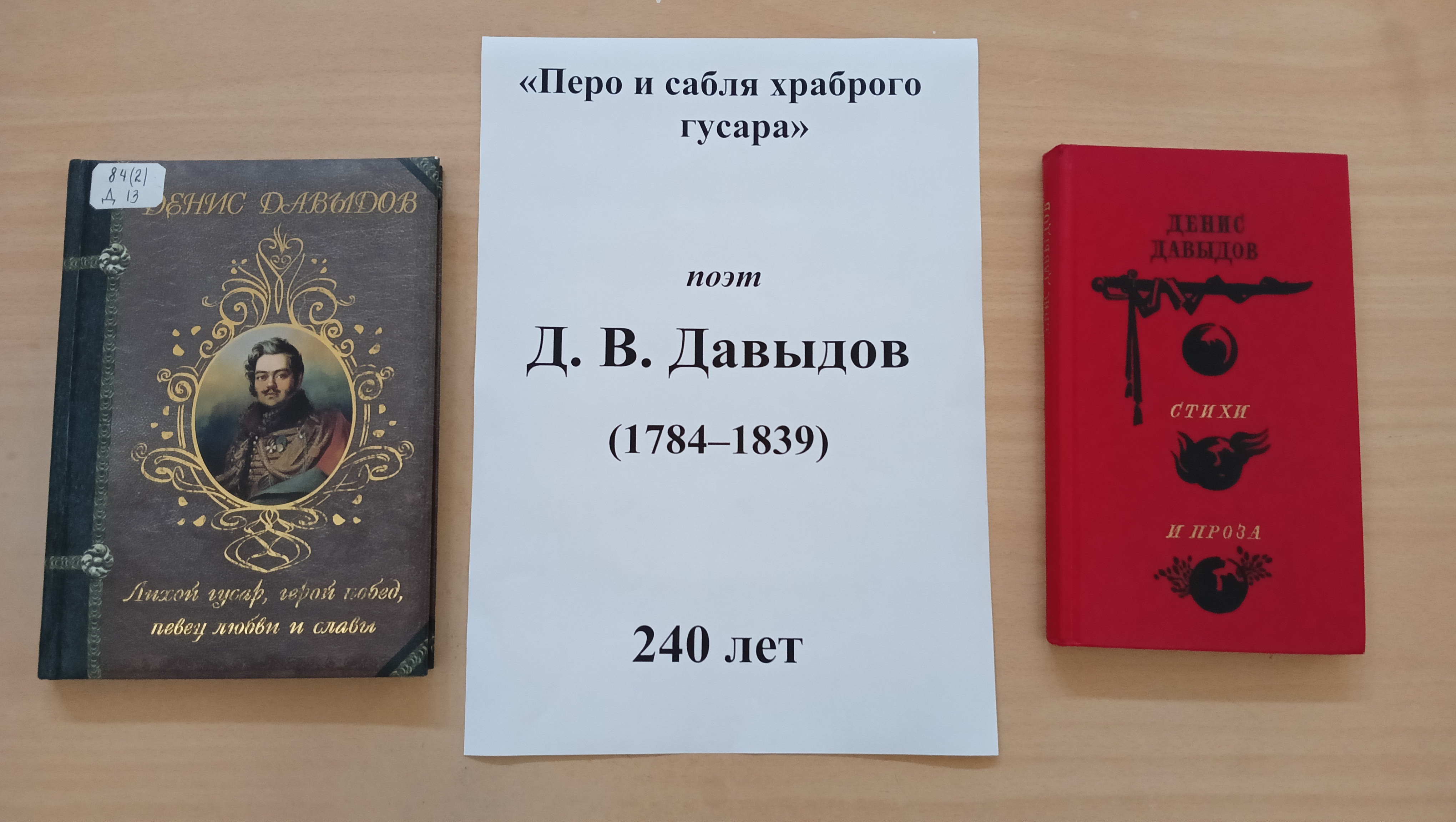 С 1 по 31 июля 2024 года в фойе читального зала Орловской областной библиотеки им. И. А. Бунина работает выставка литературы «Перо и сабля храброго гусара», посвящённая Денису Давыдову. Она приурочена к 240-летию со дня рождения этого выдающегося героя Отечественной войны 1812 года.