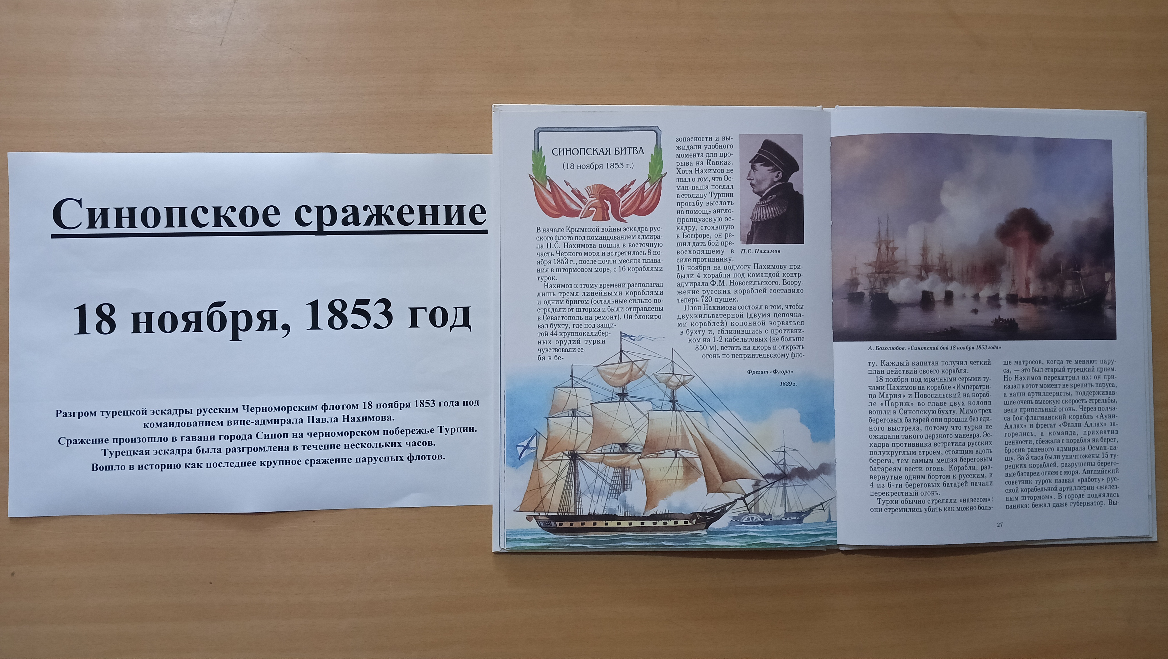 В августе в читальном зале Орловской областной библиотеки имени И. А. Бунина в рамках цикла «Великие сражения в истории России», организована выставка литературы, посвященная Синопскому сражению.