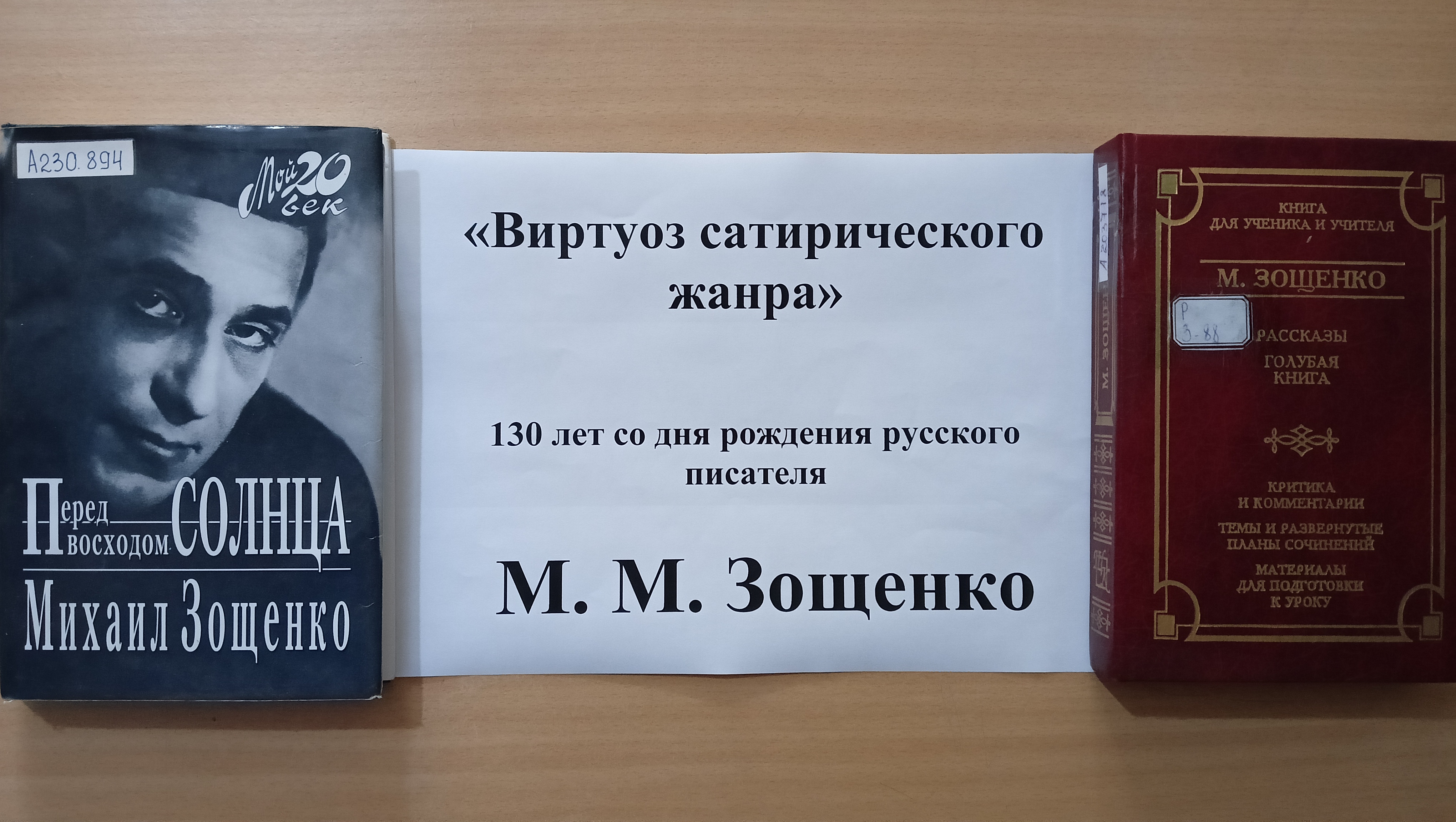Выставка литературы «Виртуоз сатирического жанра». 130 лет со дня рождения М. М. Зощенко. (12+)