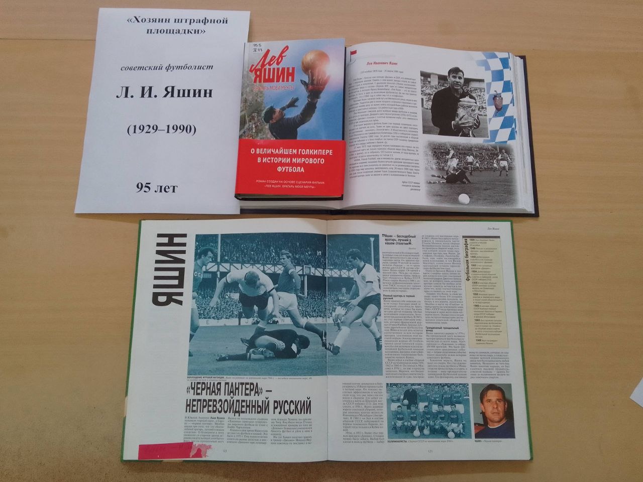 С 1 по 31 октября 2024 года Орловская областная научная универсальная публичная библиотека имени И. А. Бунина приглашает вас посетить выставку литературы «Хозяин штрафной площадки», приуроченную к 95-летию со дня рождения Льва Ивановича Яшина.