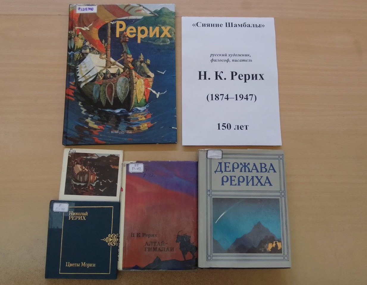 С 1 по 31 октября 2024 года в фойе читального зала Орловской областной научной универсальной публичной библиотеки им. И. А. Бунина работает выставка литературы «Сияние Шамбалы», посвящённая Николаю Константиновичу Рериху. Она приурочена к 150-летию со дня рождения выдающегося русского художника, философа и писателя.