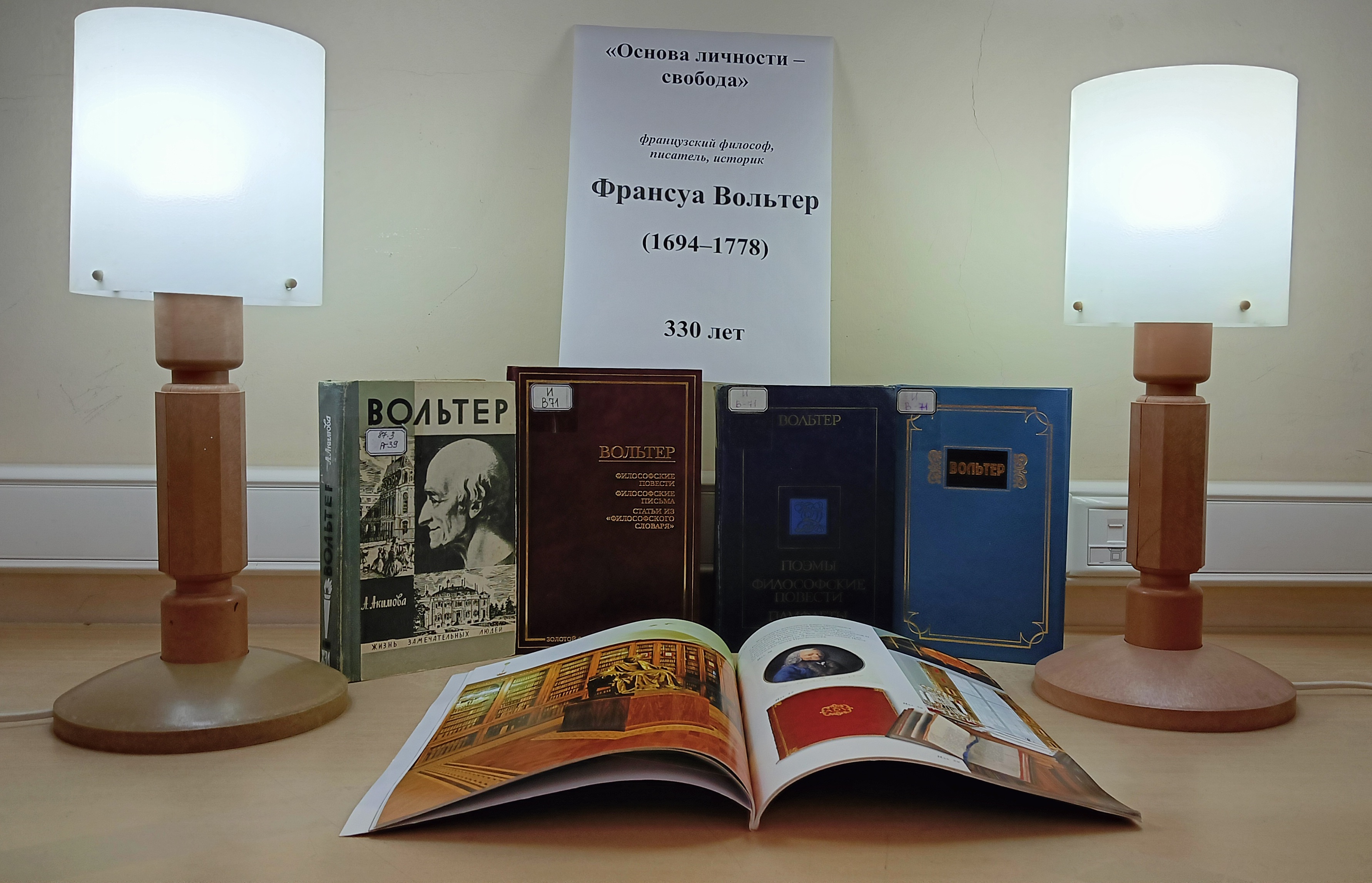 На экспозиции представлены книги, посвящённые Вольтеру, его произведения, а также материалы, рассказывающие о влиянии его идей на культуру и общество.
