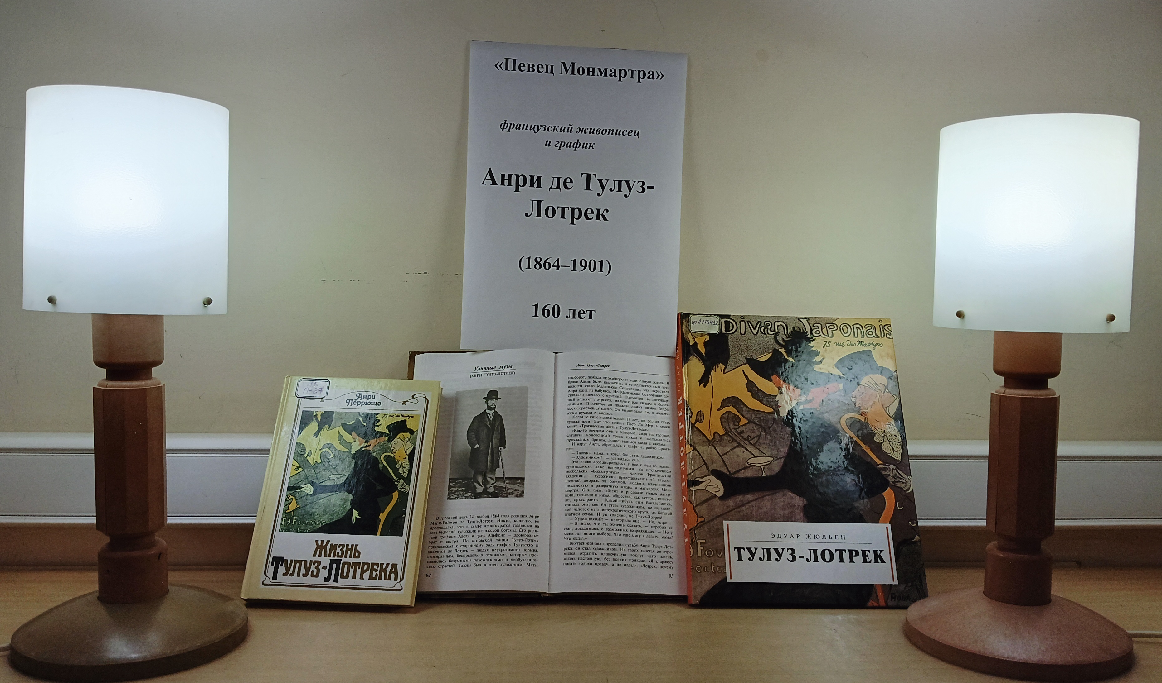 К юбилею французского художника и графика Анри де Тулуз-Лотрека в фойе читального зала Орловской областной библиотеки им. И. А. Бунина организована выставка литературы «Певец Монмартра». Экспозиция работает с 5 по 30 ноября 2024 года.