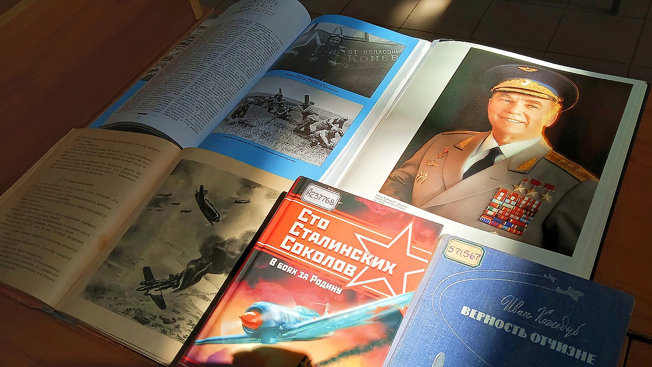 На выставке представлены биографические сведения, фотографии, статьи из периодических изданий, воспоминания самого И.Н. Кожедуба о героических событиях начала и середины 20 века. Одна из самых известных его книг - И. Кожедуб «Верность Отчизне»(1969). Это рассказы летчика – истребителя о героических буднях и подвигах однополчан, сражавшихся рядом с ним в годы Великой Отечественной войны. Издания, представленные на выставке, дают возможность познакомиться с интересными фактами судьбы уникального человека и героя Ивана Никитовича Кожедуба.