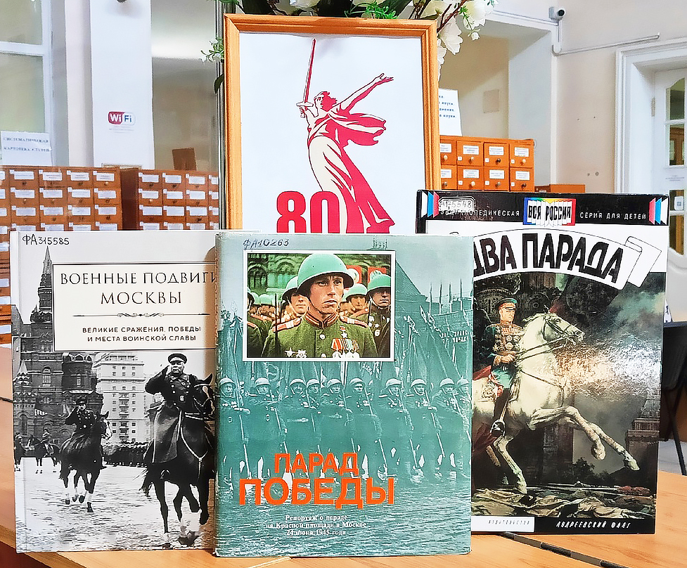 Об этом дне, повествуют известные писатели, публицисты, корреспонденты послевоенного периода, его участники и зрители. Среди представленных изданий воспоминания Г. К. Жукова и К. К. Рокоссовского. Дополняют выставку документы и фотографии Парада победителей 1945 года. Литература, представленная на экспозиции, раскрывает значимость, важность и величие события, прошедшего 80 лет назад.