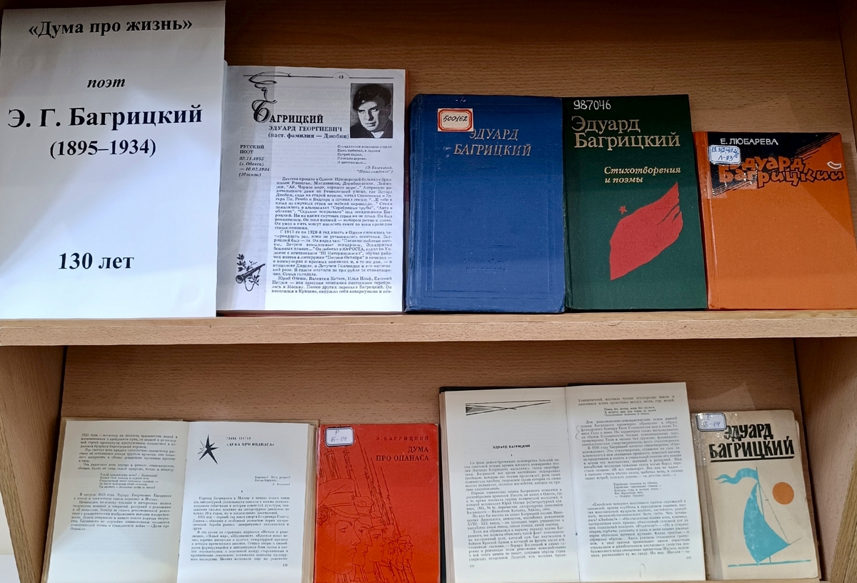 С 1 по 30 ноября 2025 года в читальном зале Орловской областной библиотеки им И. А. Бунина открыта выставка литературы «Дума про жизнь», посвященная 130-летию со дня рождения Эдуарда Георгиевича Багрицкого, знаменитого советского поэта, переводчика, драматурга и художника-графика, которая познакомит посетителей с его творчеством, жизнью и эпохой, а также привлечет внимание к литературному наследию автора.