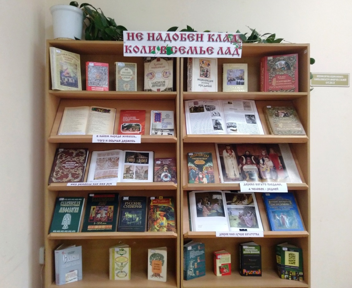 С 14 июня по 14 июля 2024 года в информационно-библиографическом отделе Орловской областной библиотеки имени И. А. Бунина работает выставка литературы «Не надобен клад, коли в семье лад».
