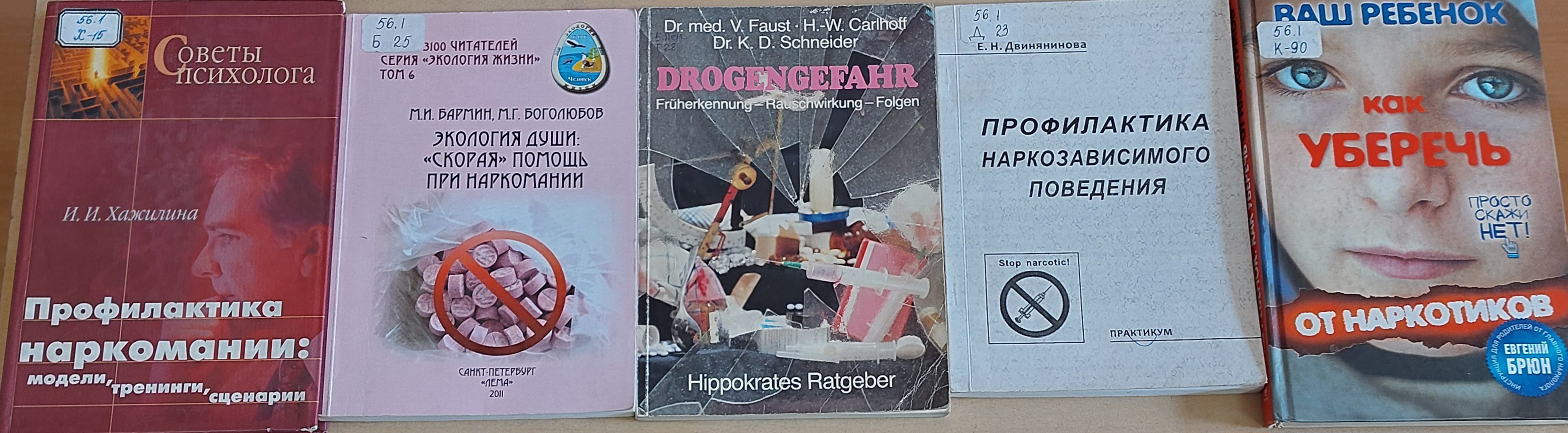 Особый интерес представляет издание Е. Н. Двиняниновой «Профилактика наркозависимого поведения». В книге представлены основные теоретические сведения по проблеме наркомании, приведены ситуационно-ролевые игры, диагностические методики, программа психологического тренинга, предусматривающая развитие навыков общения, решения конфликтных ситуаций.