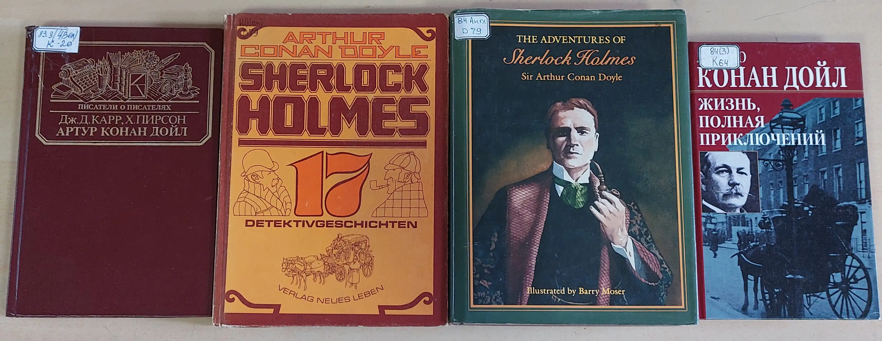 С 16 по 26 мая 2024 года в отделе документов на иностранных языках Орловской областной библиотеки им. И. А. Бунина работает выставка «Arthur Conan Doyle». На ней представлена литература на русском и английском языках о жизни и творчестве писателя, а также его произведения.