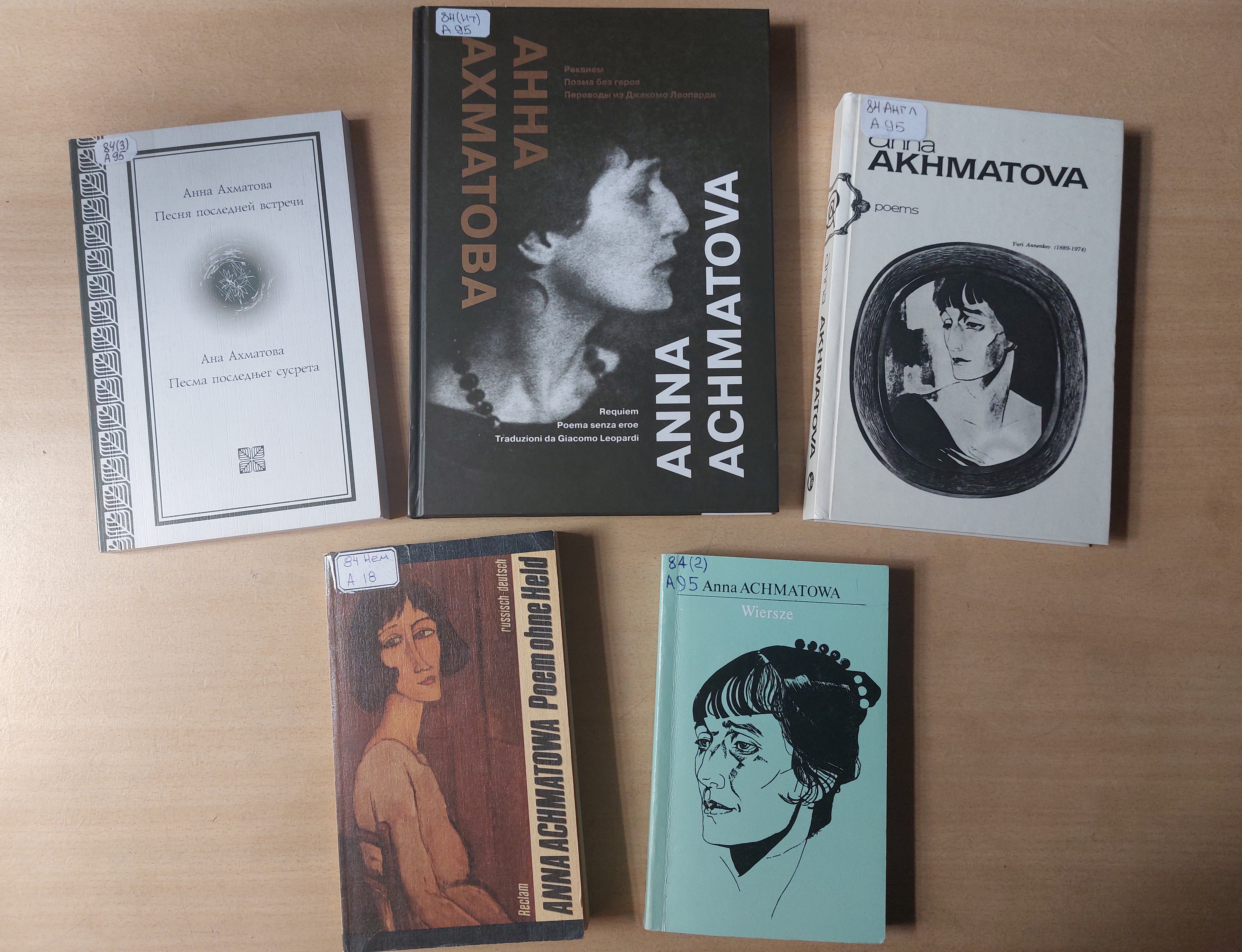 На экспозиции представлены издания на русском языке о жизни и творчестве поэтессы, а также ее произведения на русском и иностранных языках (с параллельным русским текстом).