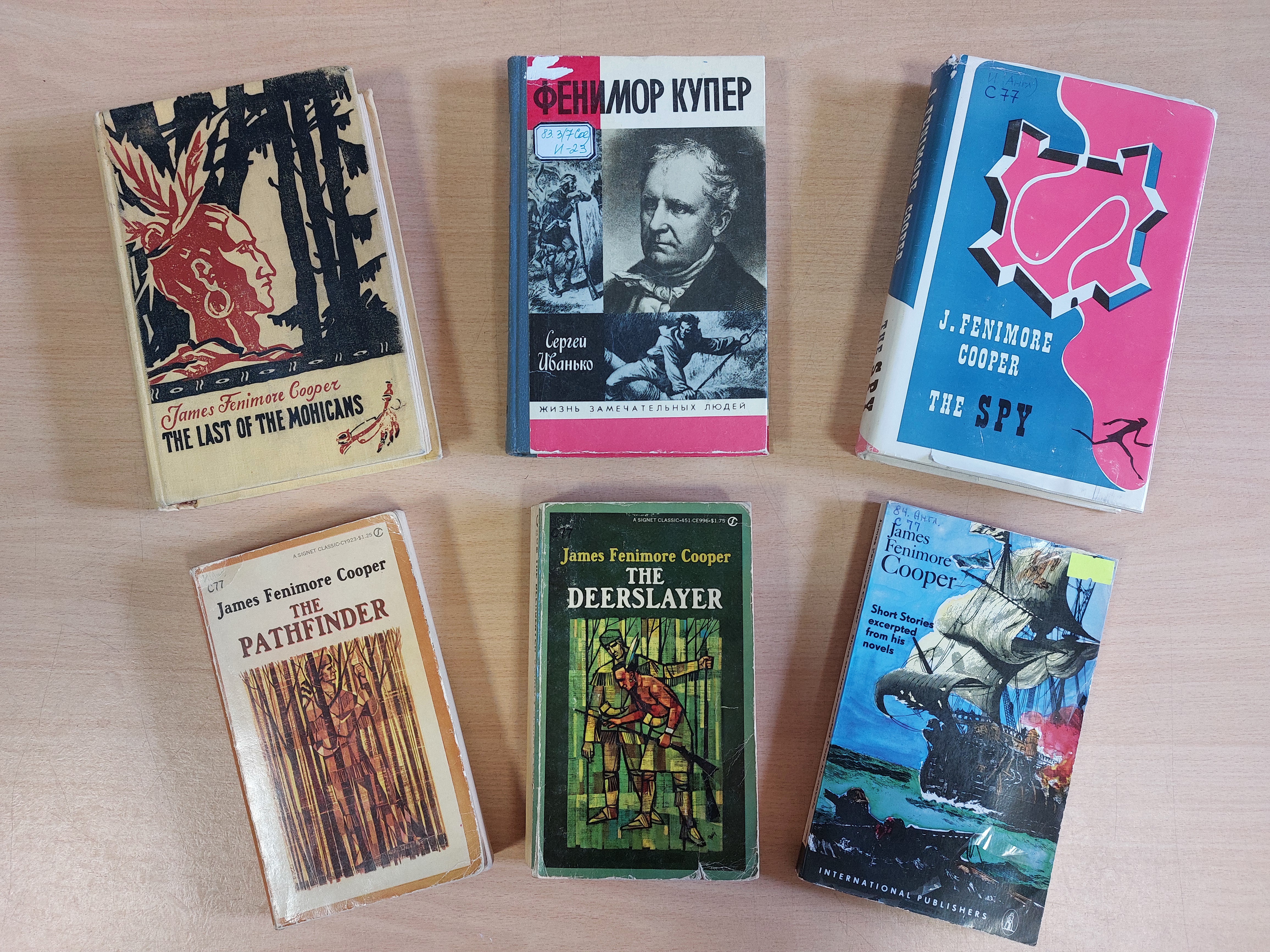 На выставке представлена литература о жизни и творчестве Джеймса Фенимора Купера, а также его произведения на английском языке.