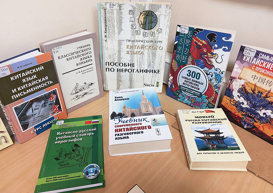 На выставке представлены учебники, учебные пособии и разговорники китайского языка, а также журнал «Китай».