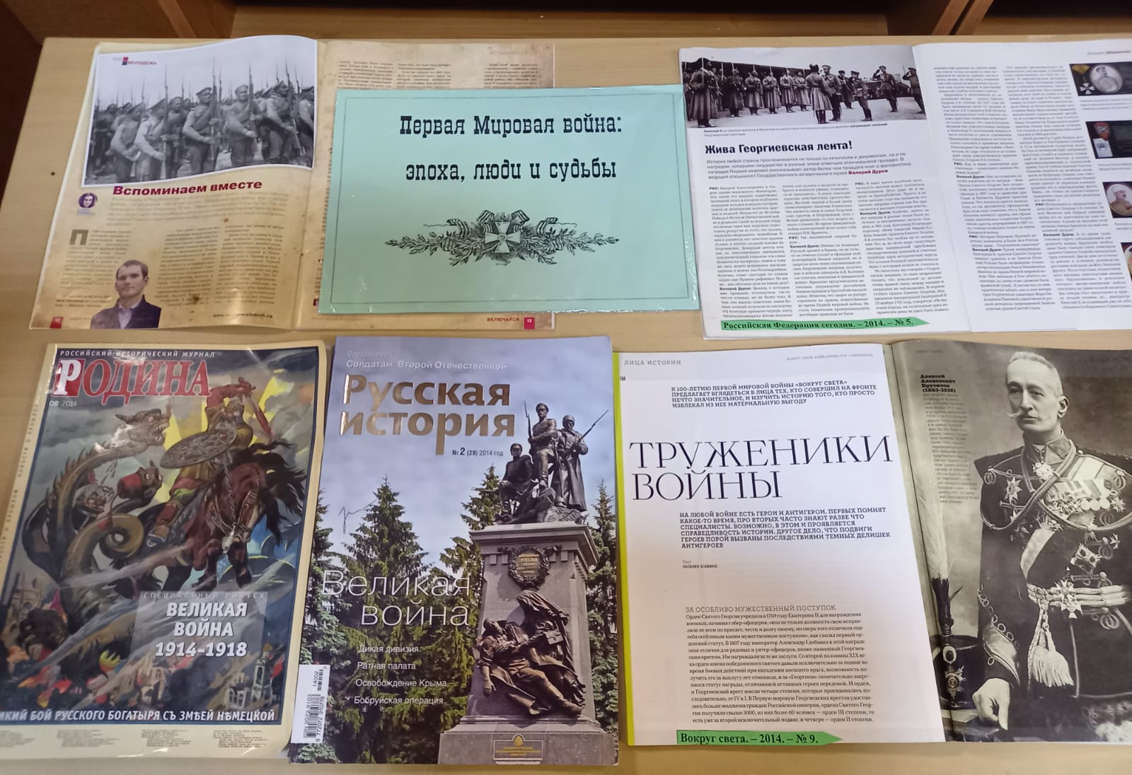 С 20 июля по 15 августав зале периодики Областной библиотеки им. И.А.Бунина работает выставка «Первая мировая война: эпоха, люди и судьбы», приуроченная ко Дню памяти российских воинов, погибших в Первой мировой войне и к 110-летия со дня ее начала.