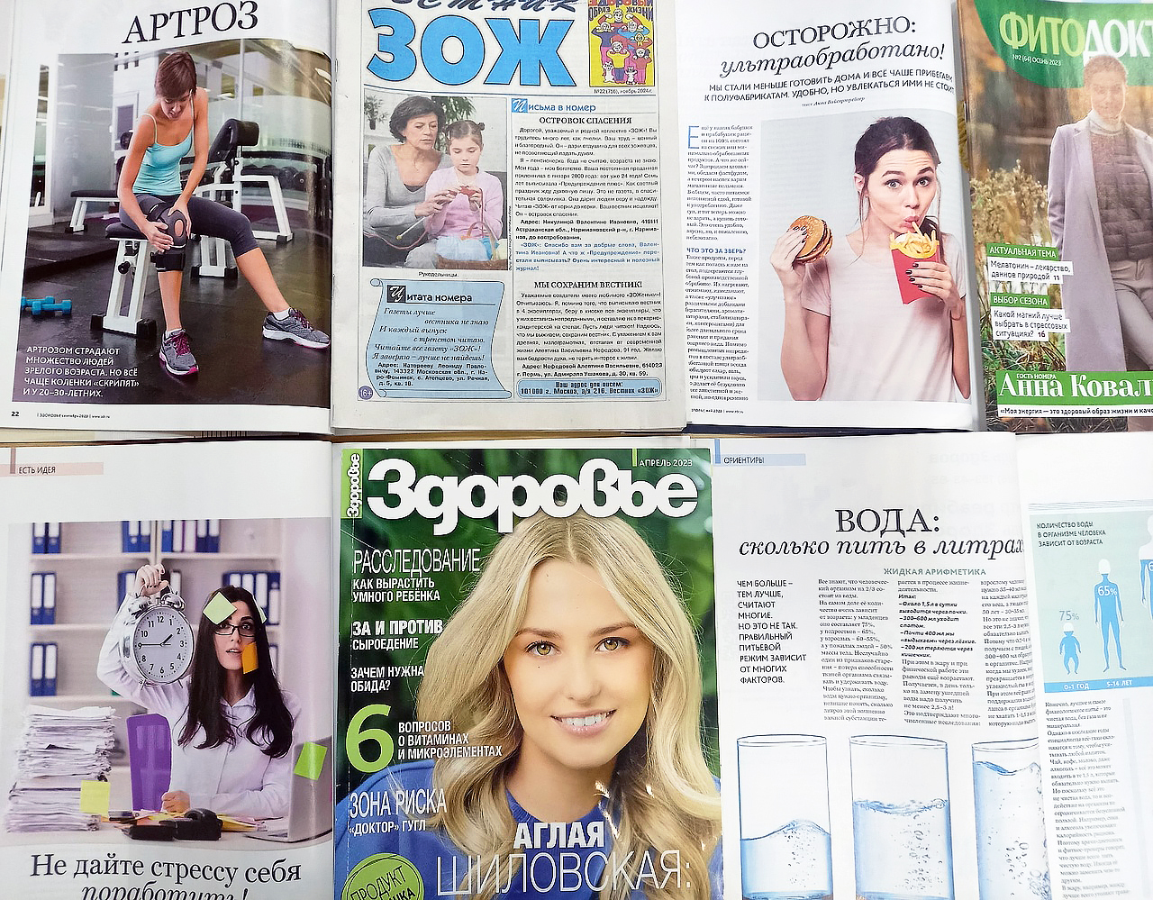 Отдельный раздел выставки посвящен такой модной сейчас теме – здоровому образу жизни. Газета «ЗОЖ» знакомит читателями с нетрадиционными медицинскими процедурами и рецептами народной медицины. Журналы «Здоровье», «Предупреждение» заинтересуют любителей фитнеса, адептов здорового питания и приверженцев косметологических процедур.