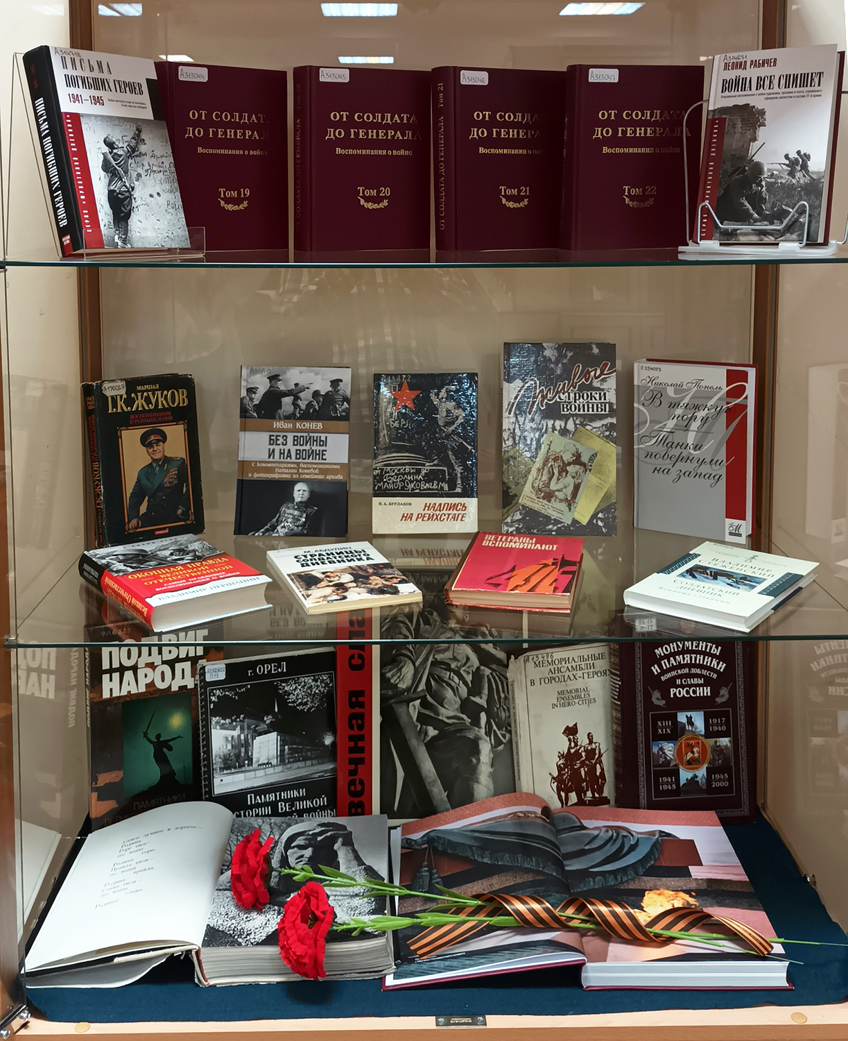 Выставку дополняют «Воспоминания и размышления» маршала Георгия Жукова, мемуары поэтессы Ольги Берггольц «Говорит Ленинград», М. Абдулина «Страницы солдатского дневника», В. Першанина «Окопная правда Великой Отечественной. Самые правдивые воспоминания о войне».