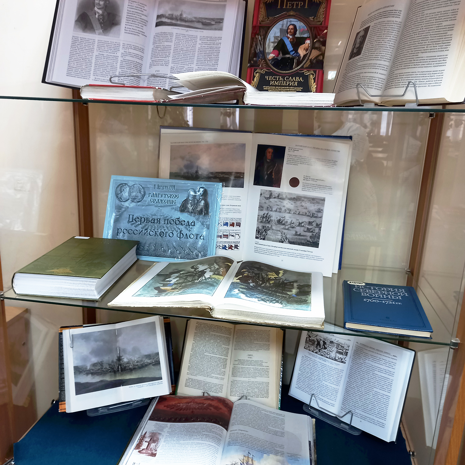 С 19 июня по 20 июля 2025 года в зале периодических изданий орловской областной библиотеки им. И. А. Бунина работает новая выставка из цикла «Вехи Доблести и Славы России» - «Гангут: первая победа российского флота».
