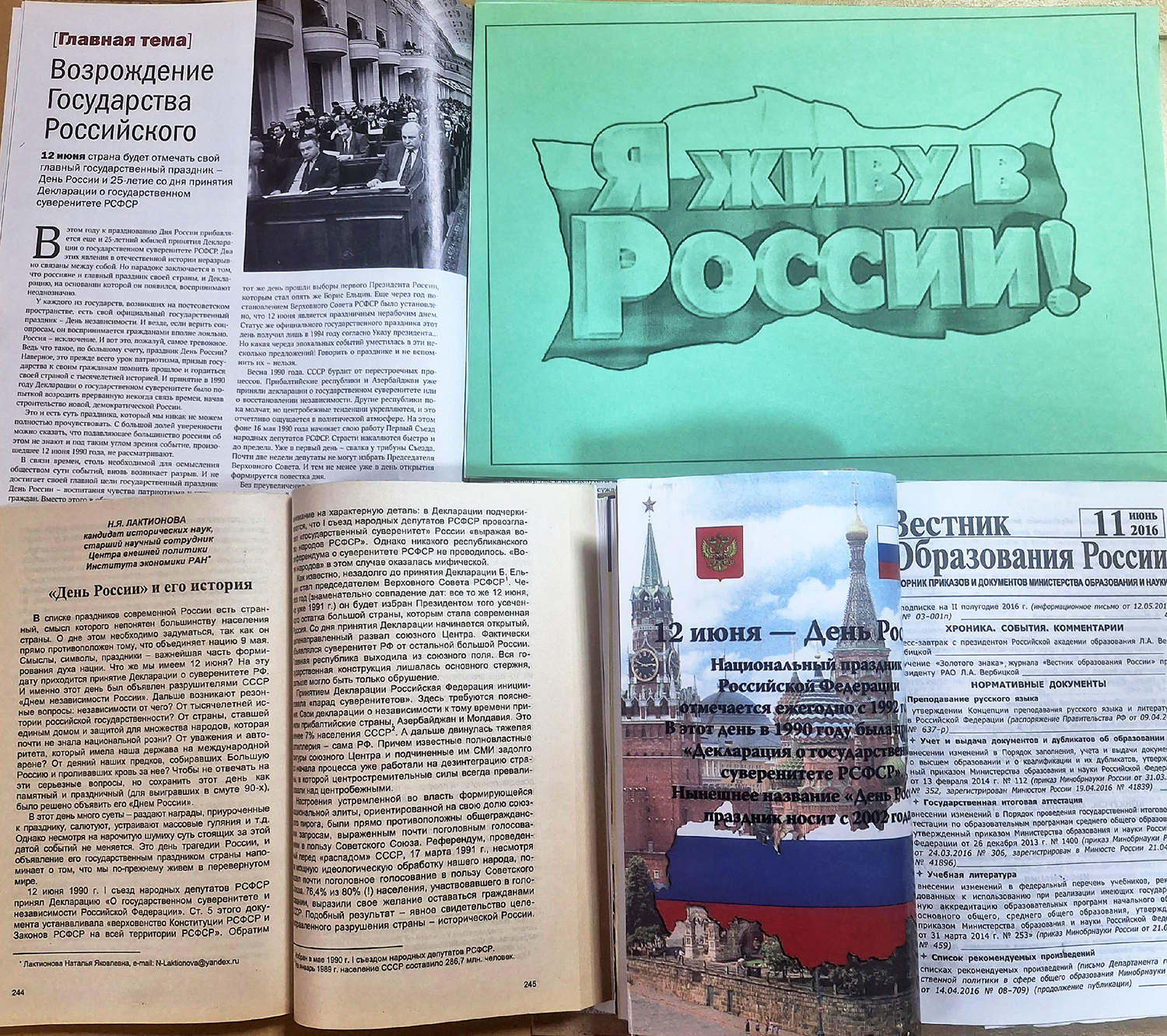 Какие возможности дает суверенитет, почему для некоторых россиян 12 июня всего лишь «дополнительный выходной день», как меняется отношение к празднику, и система ценностей на современном этапе? Вот те вопросы, которые волнуют неравнодушного гражданина. Получить ответ на них дают возможность статьи, опубликованные на страницах журналов: «Российская Федерация сегодня», «Огонек» и др., в газете «Орловская правда».