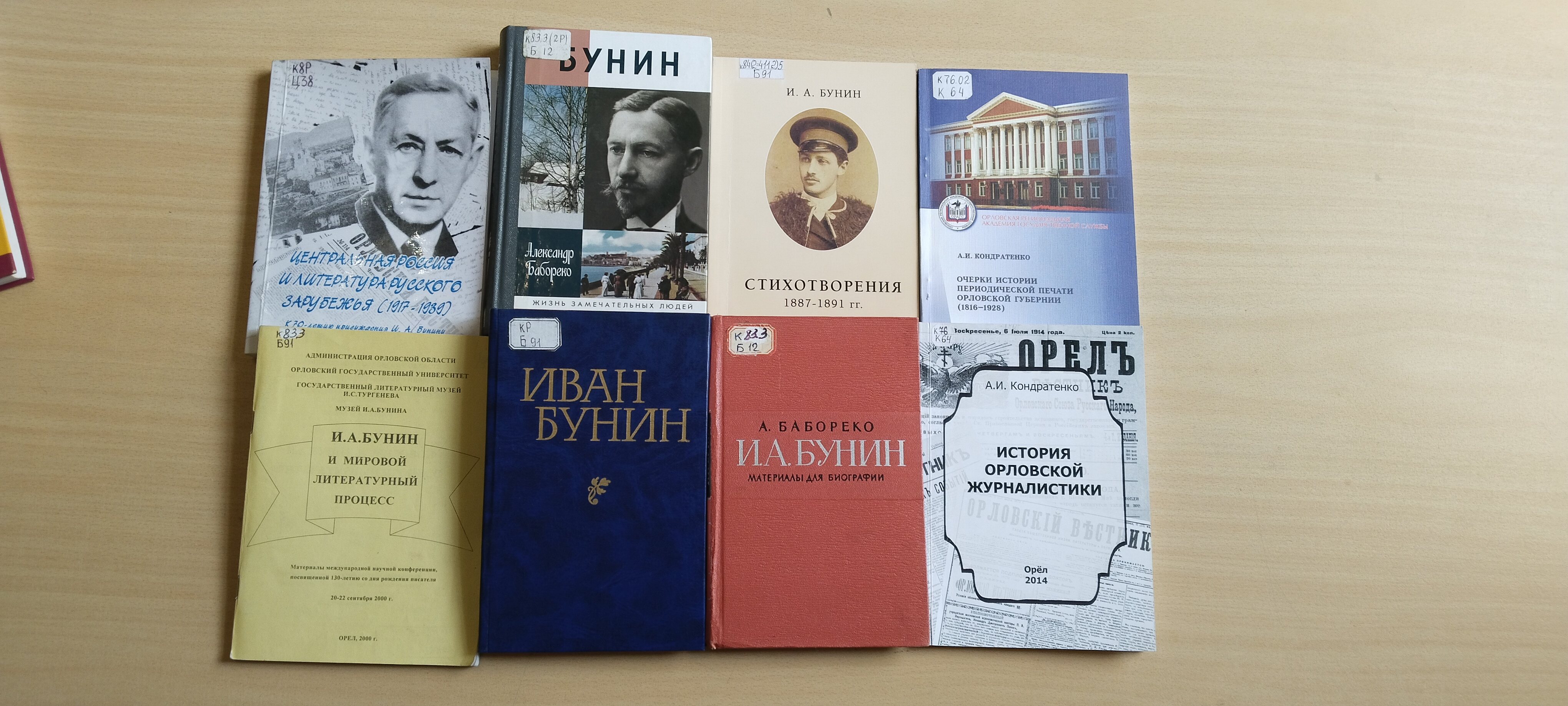 Экспонируются орловские страницы жизни писателя. Работе в газете «Орловский вестник» посвящены публикации А. И. Кондратенко. Это материалы: международной конференции «И. А. Бунин и мировой литературный процесс» (Орел, 2000), монографии «Очерки истории периодической печати Орловской губернии (1816-1928)» (Орел, 2002), учебно-методическое пособие «История орловской журналистики» (Орел, 2014), а также статья аспиранта Орловского государственного университета им. И. С. Тургенева С. Н. Сопова в 10 выпуске сборника материалов Всероссийских Славянских Чтений «Славянский сборник» (Орел, 2012).