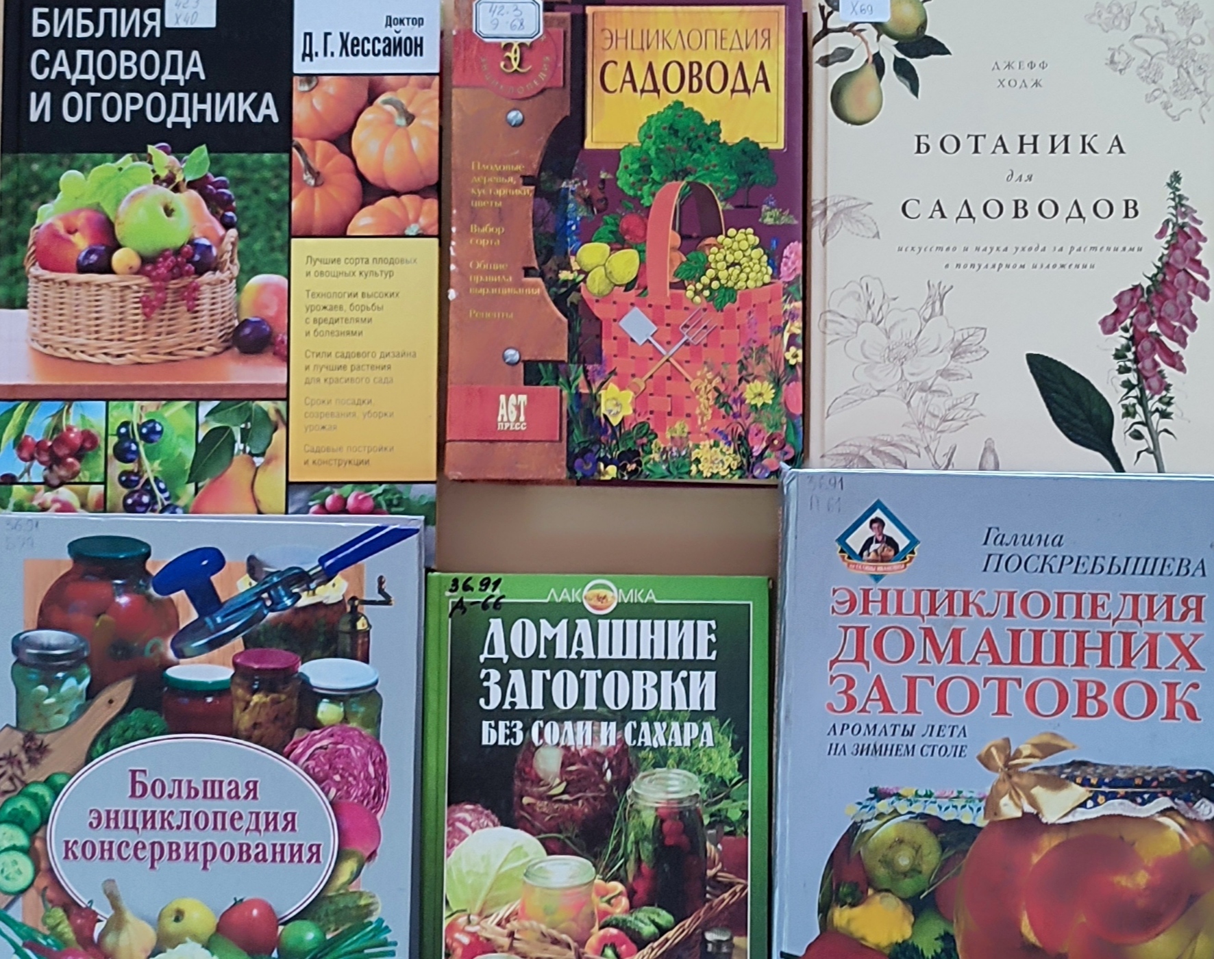 В первом разделе выставки – книги по выращиванию урожая в приусадебных хозяйствах. Подробно и доступно описаны основные сорта овощей, фруктов, зеленых культур. Приведены способы подготовки и посева семян, ухода за растениями, борьбы с вредителями растений. Освещены основные вопросы, возникающие в практической деятельности на приусадебном участке.