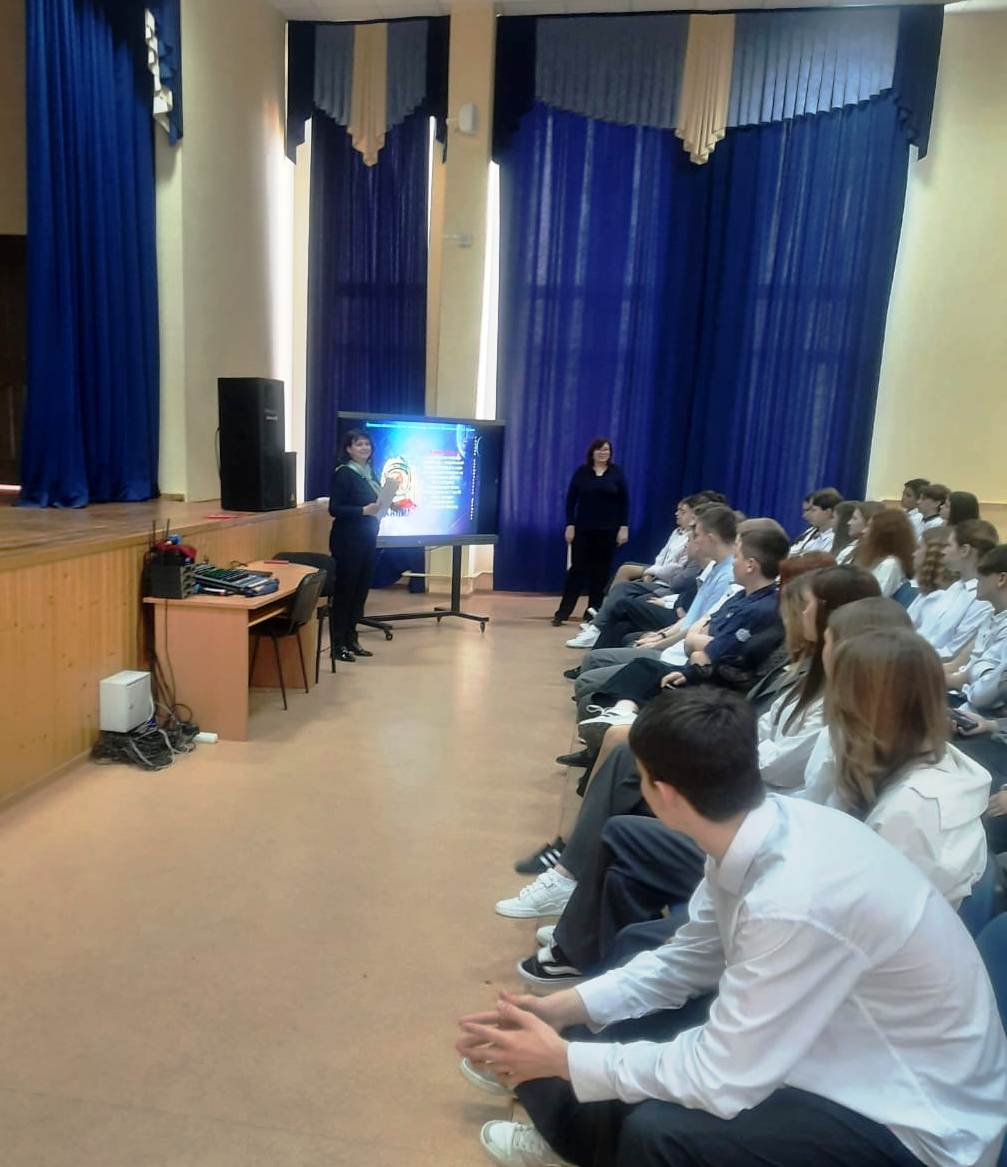 Учащиеся Орловского техникума путей сообщения им. В. А. Лапочкина на патриотическом часе.