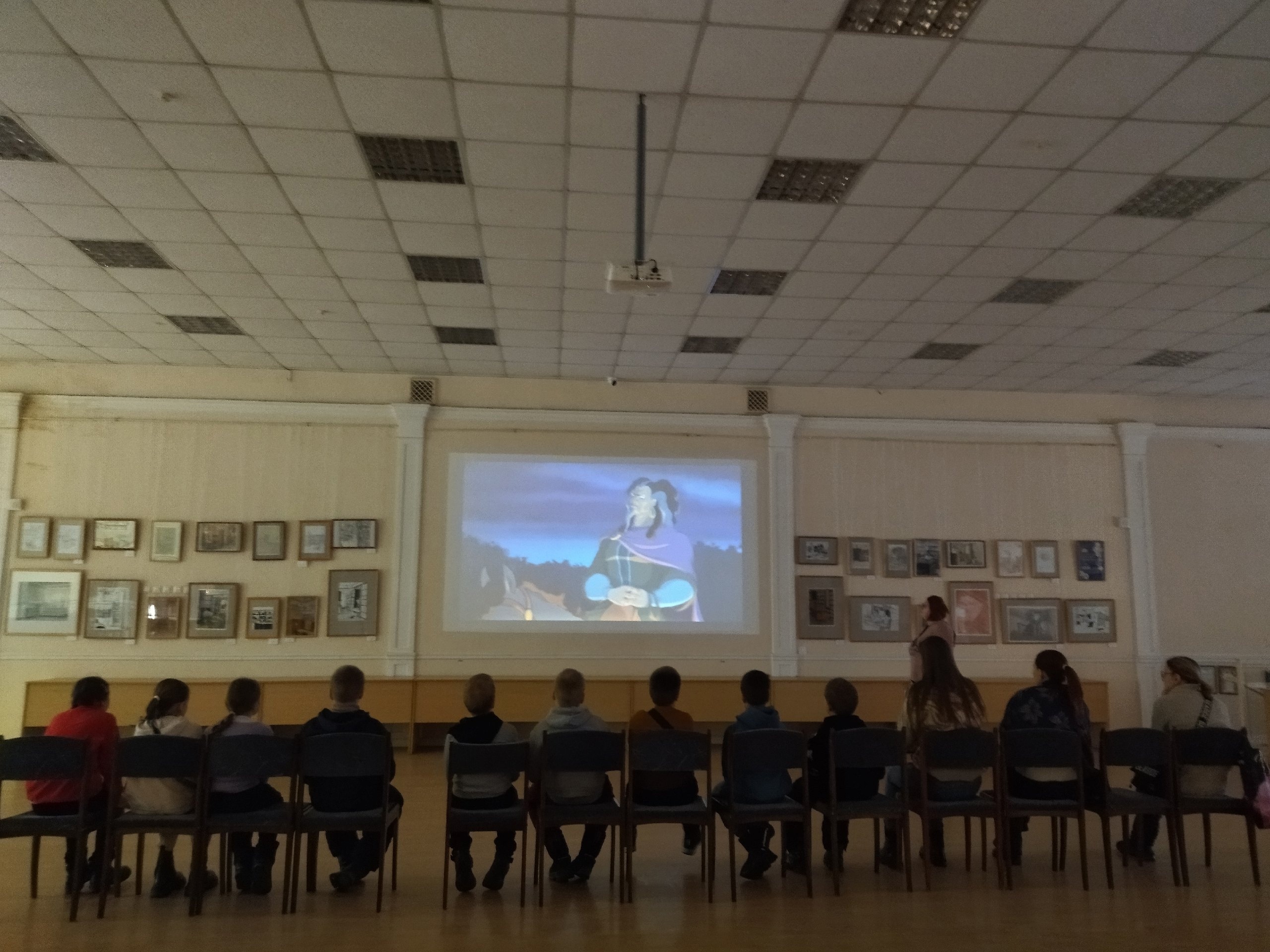 Дети внимательно смотрят отрывки из фильмов о наших защитниках