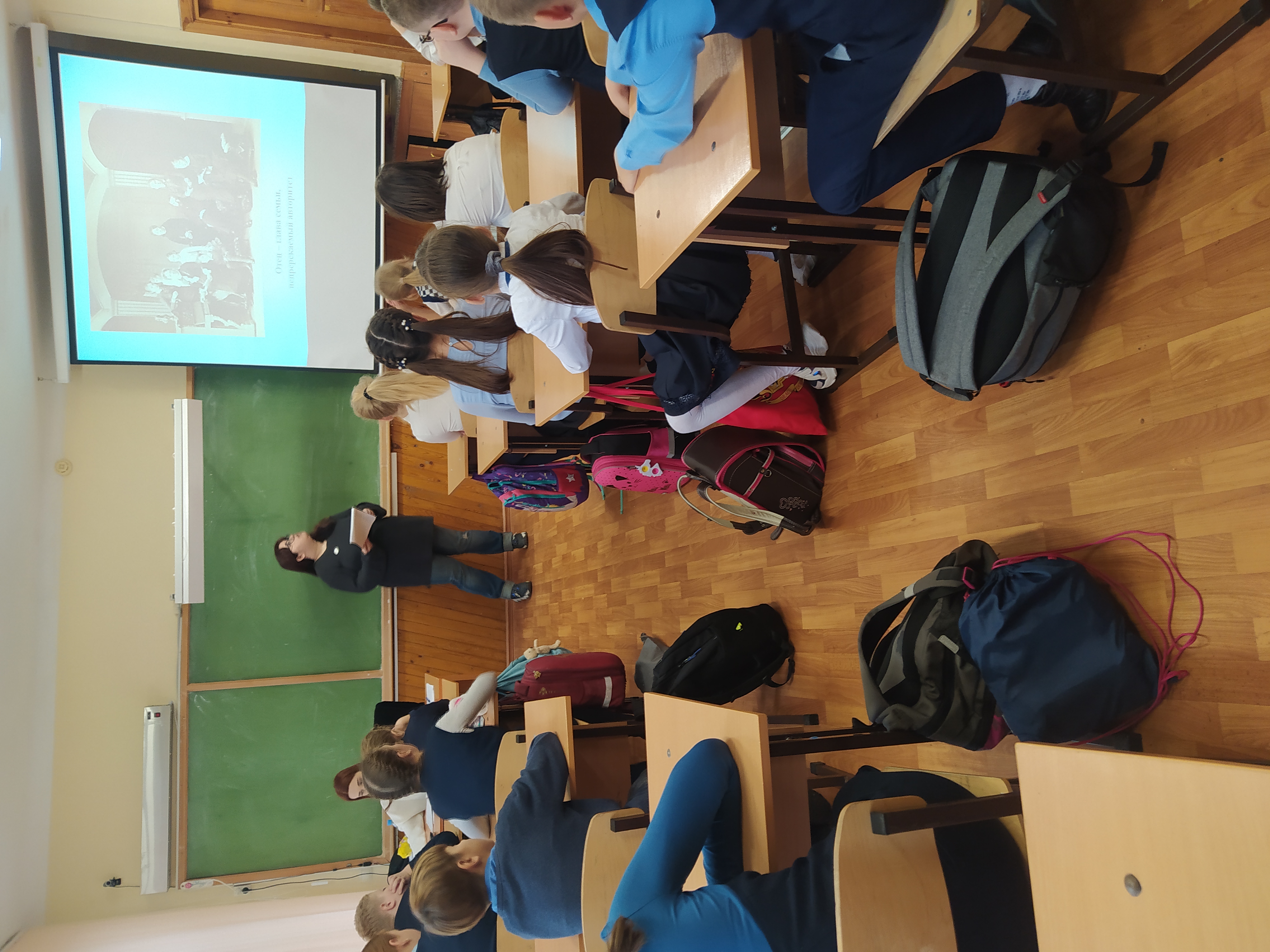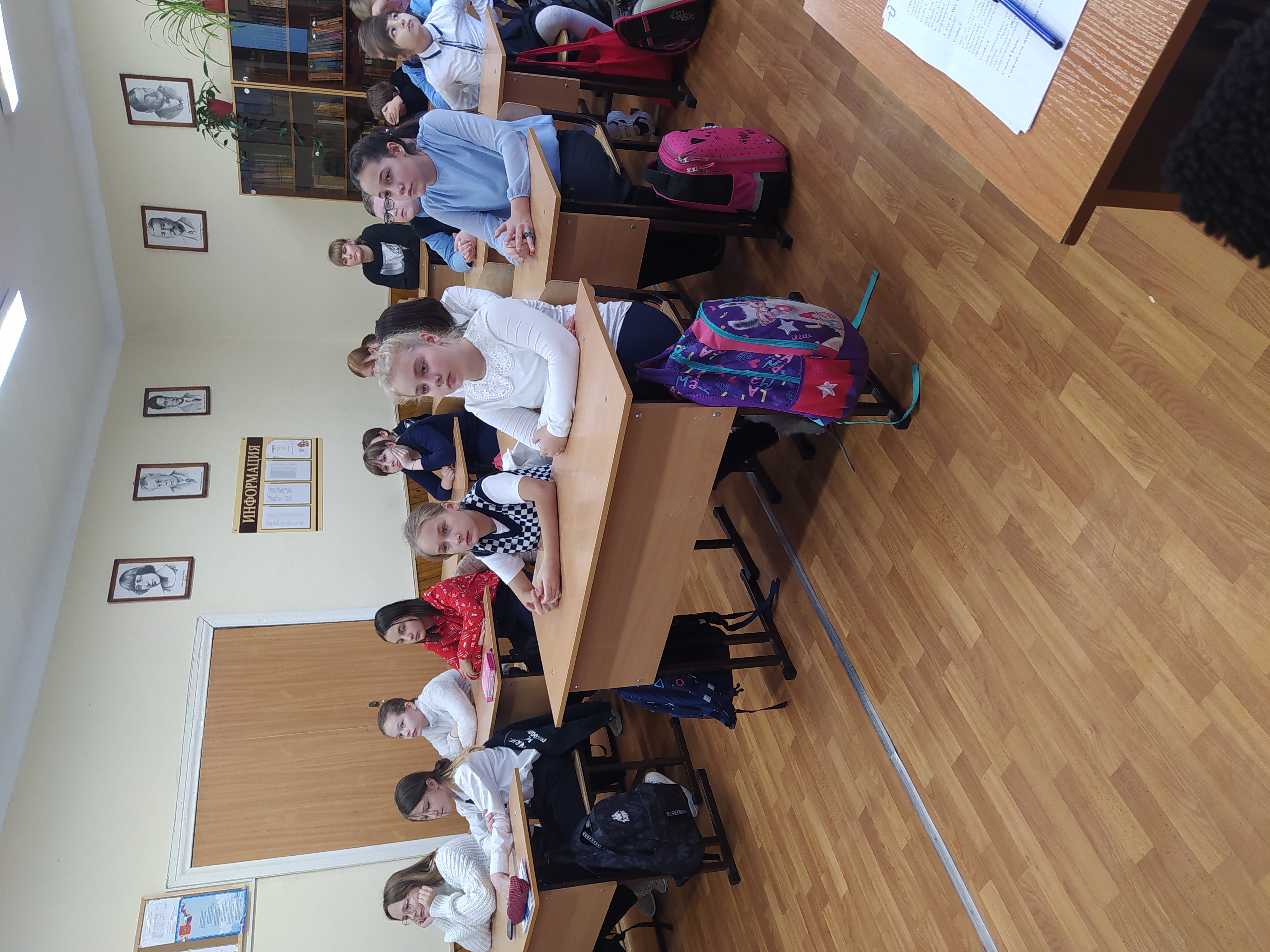 Учащиеся лицея №1 на внеурочном часе в рамках программы Разговоры о важном, проводимом сотрудниками библиотеки им. И.А.Бунина
