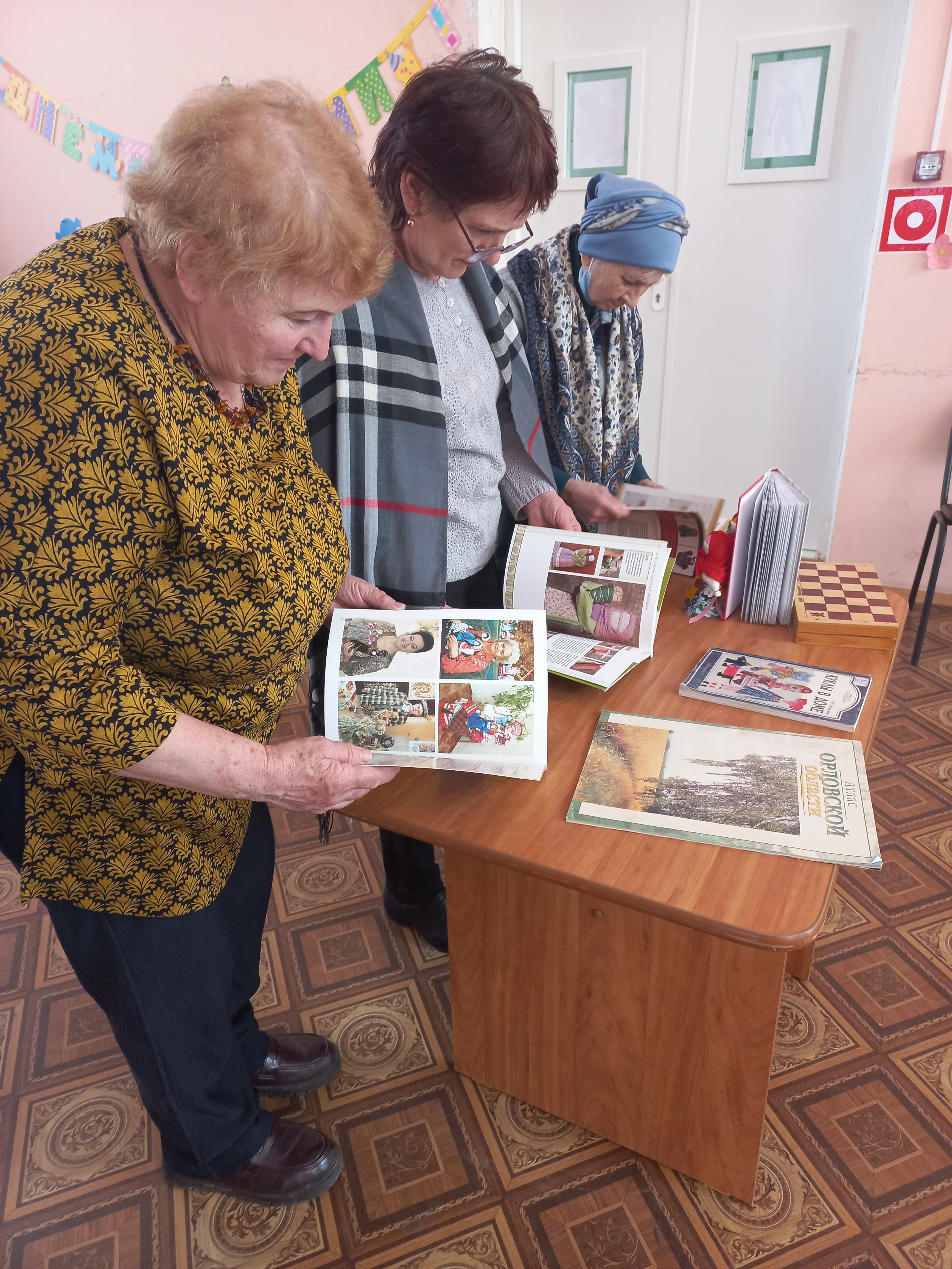 Получатели социальных услуг КЦСОН Урицкого района знакомятся с литературой на выставке, посвящённой тряпичным куклам