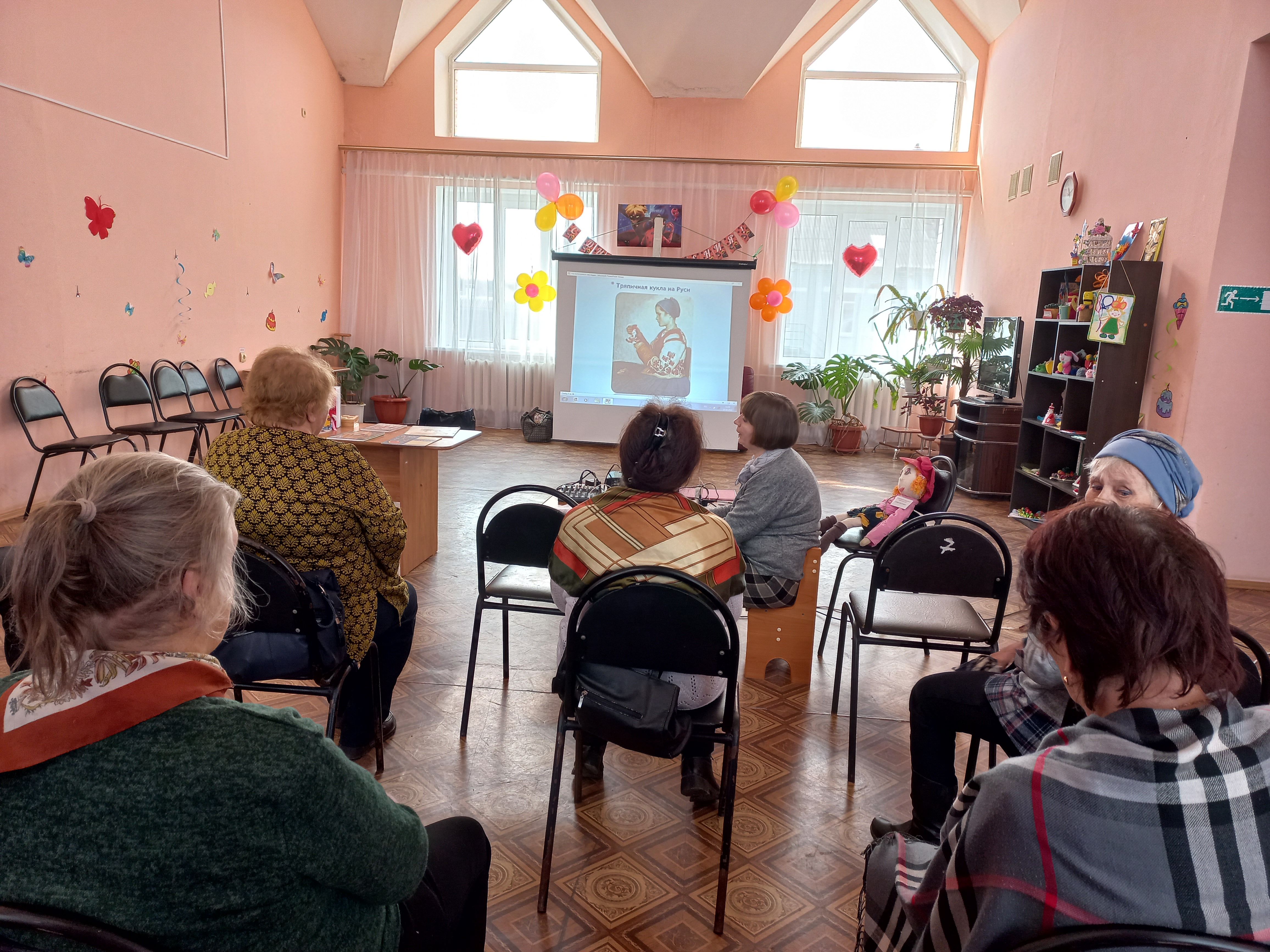 Получатели социальных услуг КЦСОН Урицкого района на прослушивание историко культурного часа Тряпичные куклы на Руси.