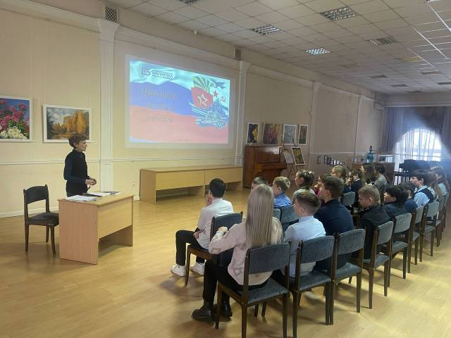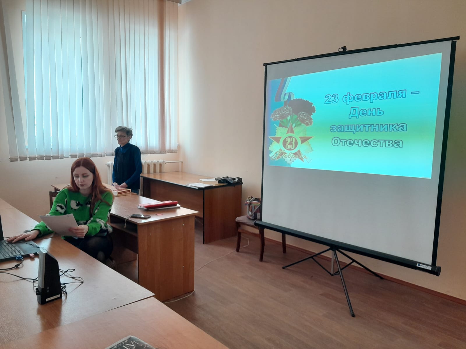 26 февраля 2024 г. сотрудник библиотека им.И.А. Бунина на патриотическом часе в многопрофильном колледже им.Н.В.Парпхина