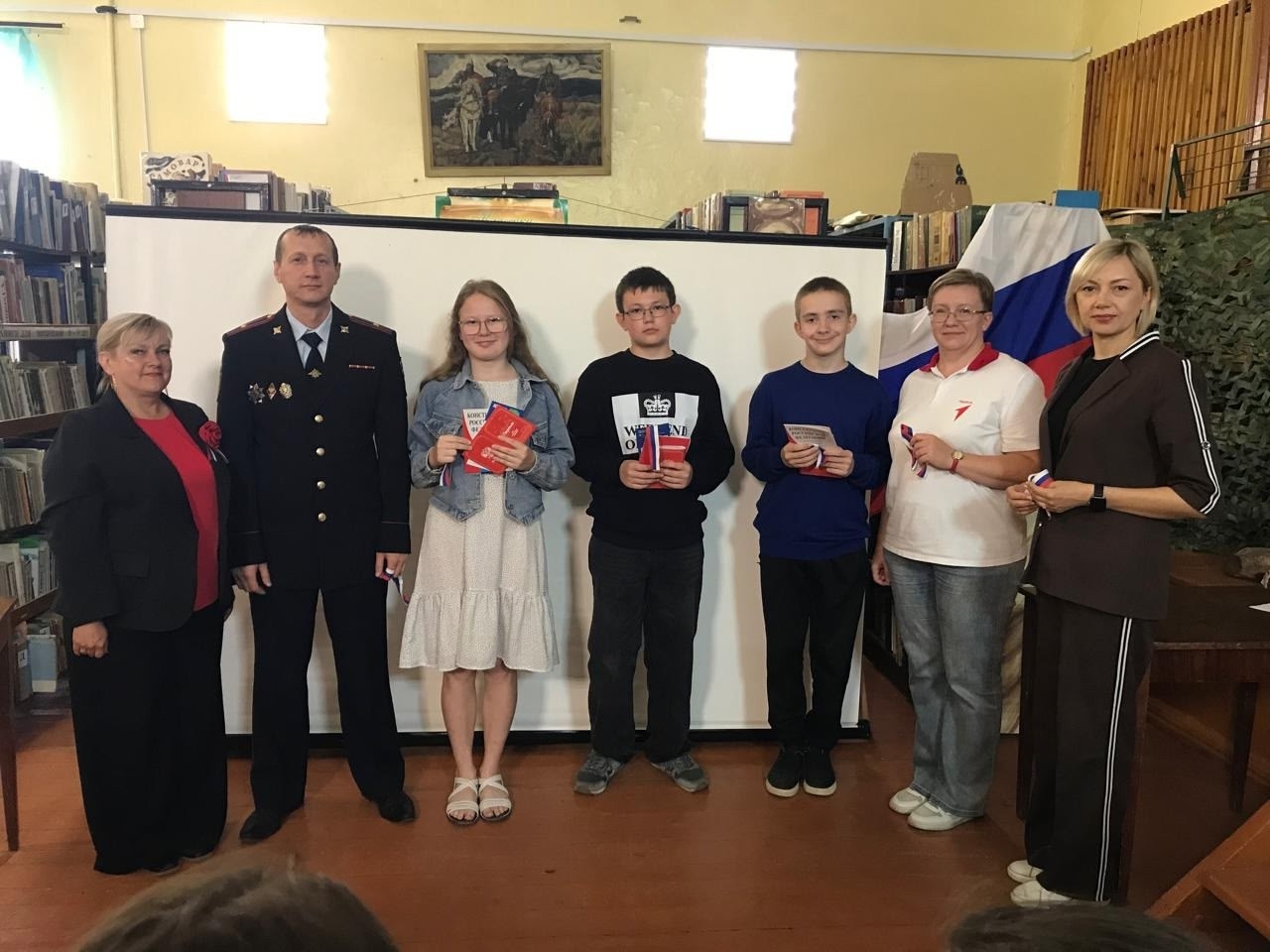 В рамках церемонии торжественного вручения паспортов гражданам, достигшим 14-летнего возраста, приуроченного ко Дню Государственного флага Российской Федерации, в межпоселенческой районной библиотеке прошла Библиодемонстрация «Три символа на фоне истории».
