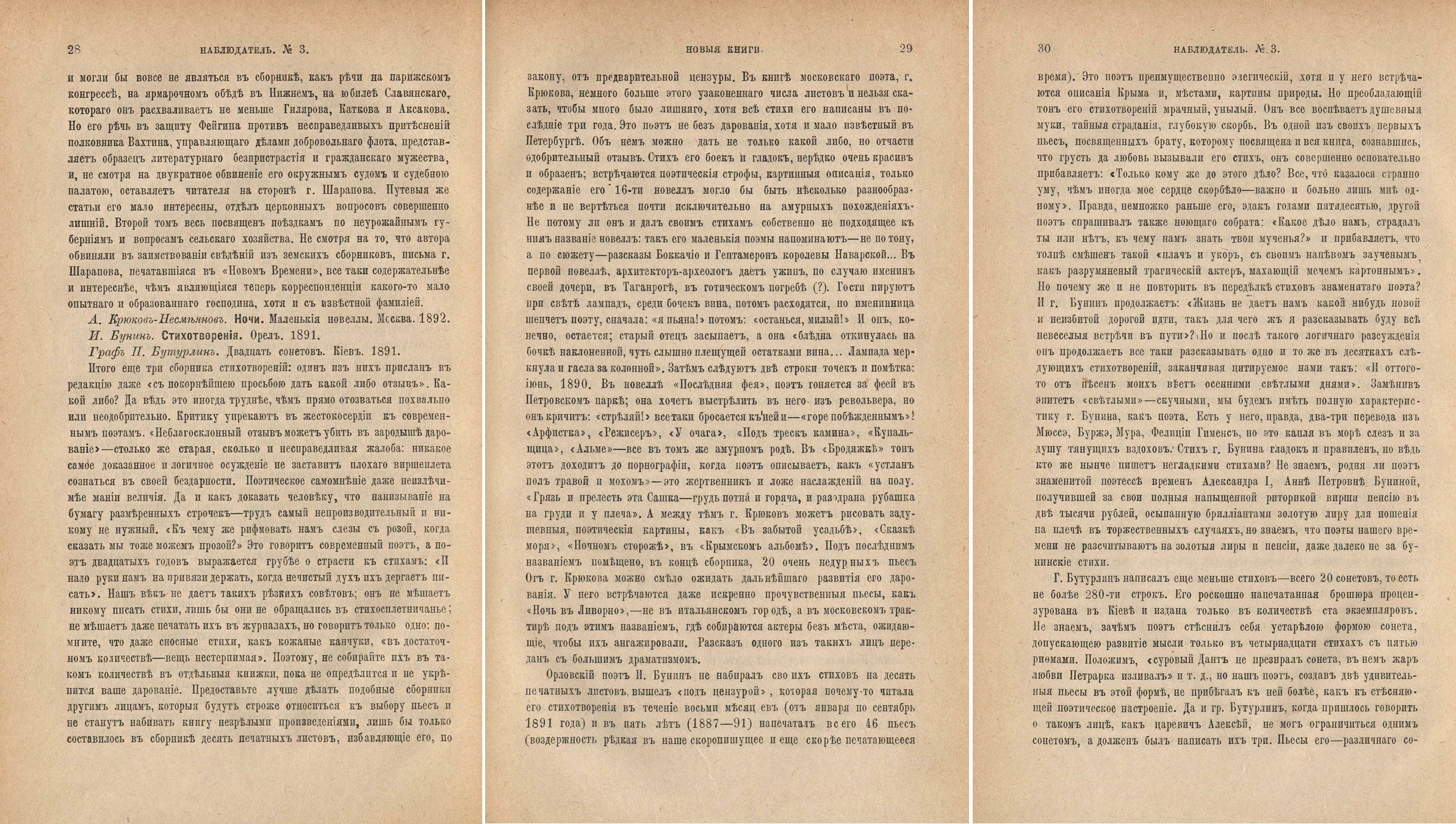 31. К-ский А. [Коринфский А. А.] [Рец. на кн.: Бунин И. Стихотворения 1887–1891 гг. – Орел, 1891] / [А. А. Коринфский] // Всемирная иллюстрация. – Санкт-Петербург, 1892. – Том XLVII. – № 22 (23 мая). – С. 402–403. – URL:(дата обращения: 19.10.2024).