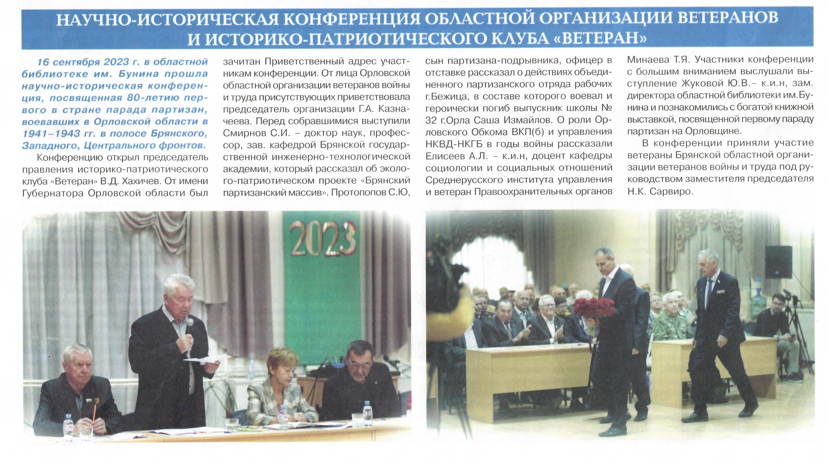 Научно-историческая конференция областной организации ветеранов и историко-патриотического клуба "Ветеран" // Ветеран Орловщины. 2023. № 2. С. 2. |