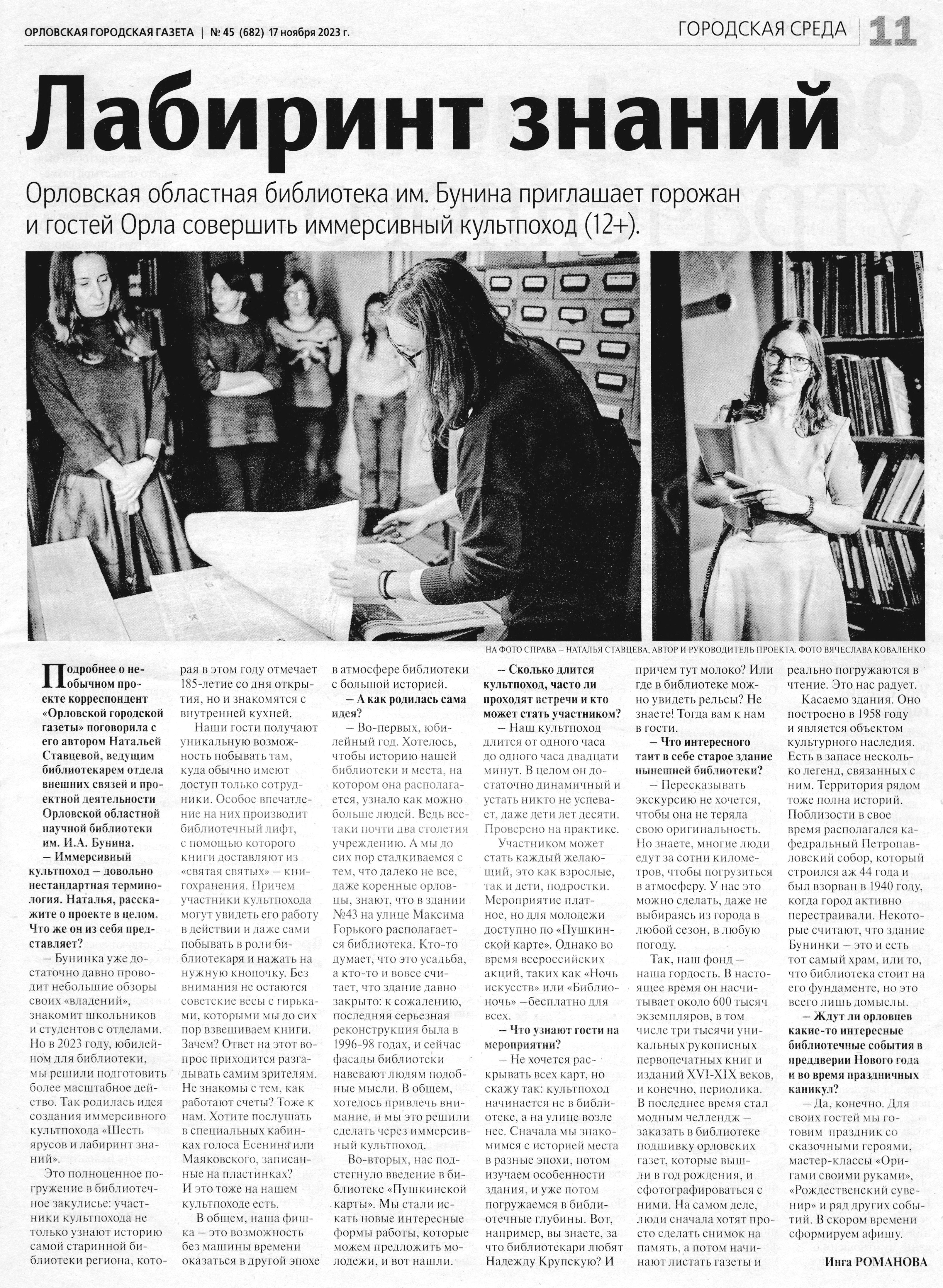 Тютюнова Ю. Вдохновлённые библиотекой // Орловский вестник. 2023. № 25 (20 декабря). С.14. |