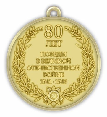 Юбилейная медаль "80 лет Победы в Великой Отечественной войне 1941 – 1945 гг." изготавливается из металла золотистого цвета и имеет форму круга диаметром 32 мм.