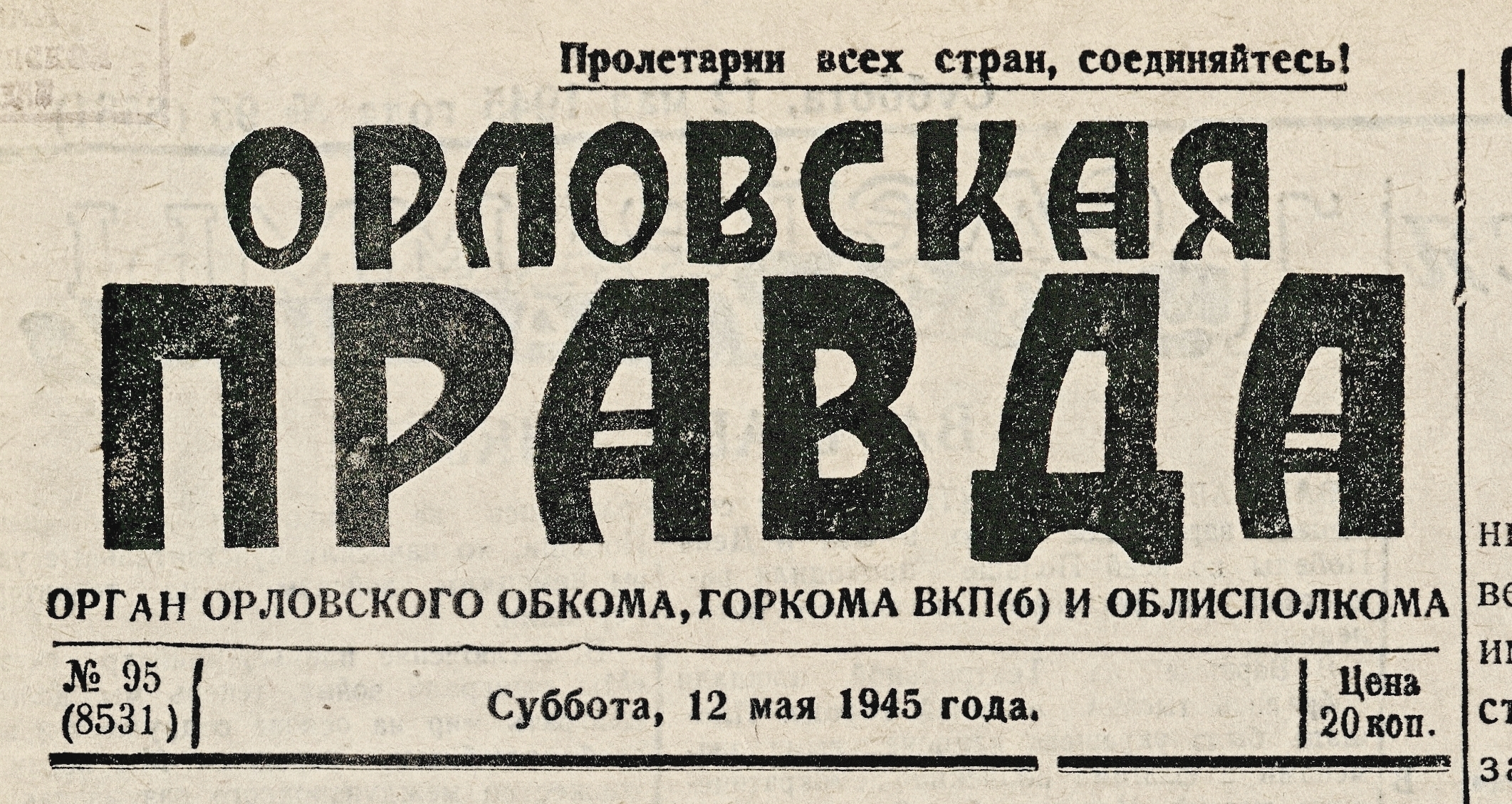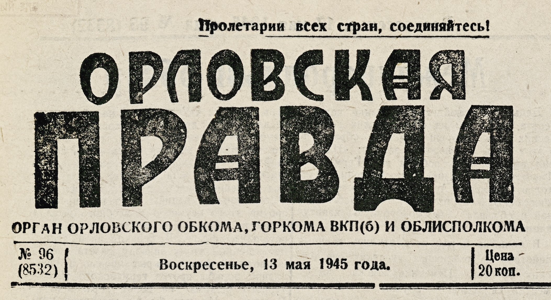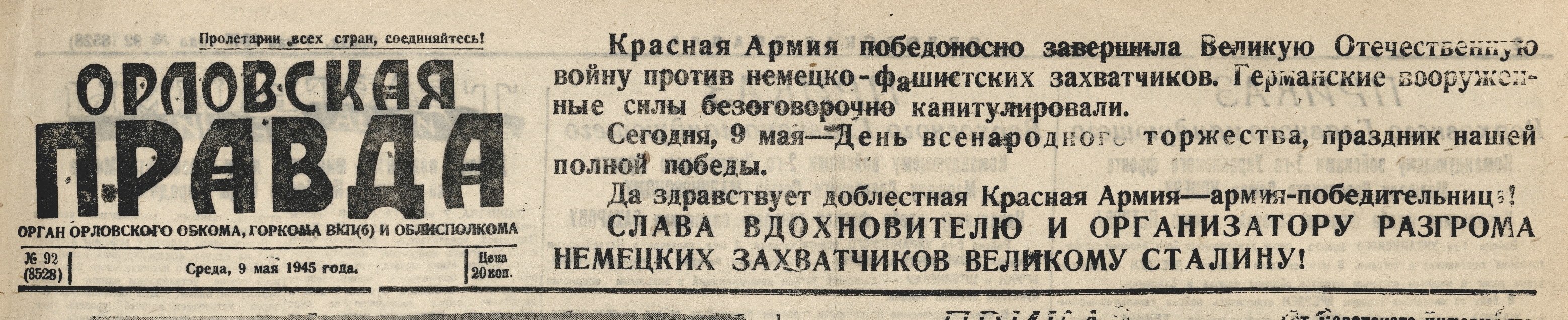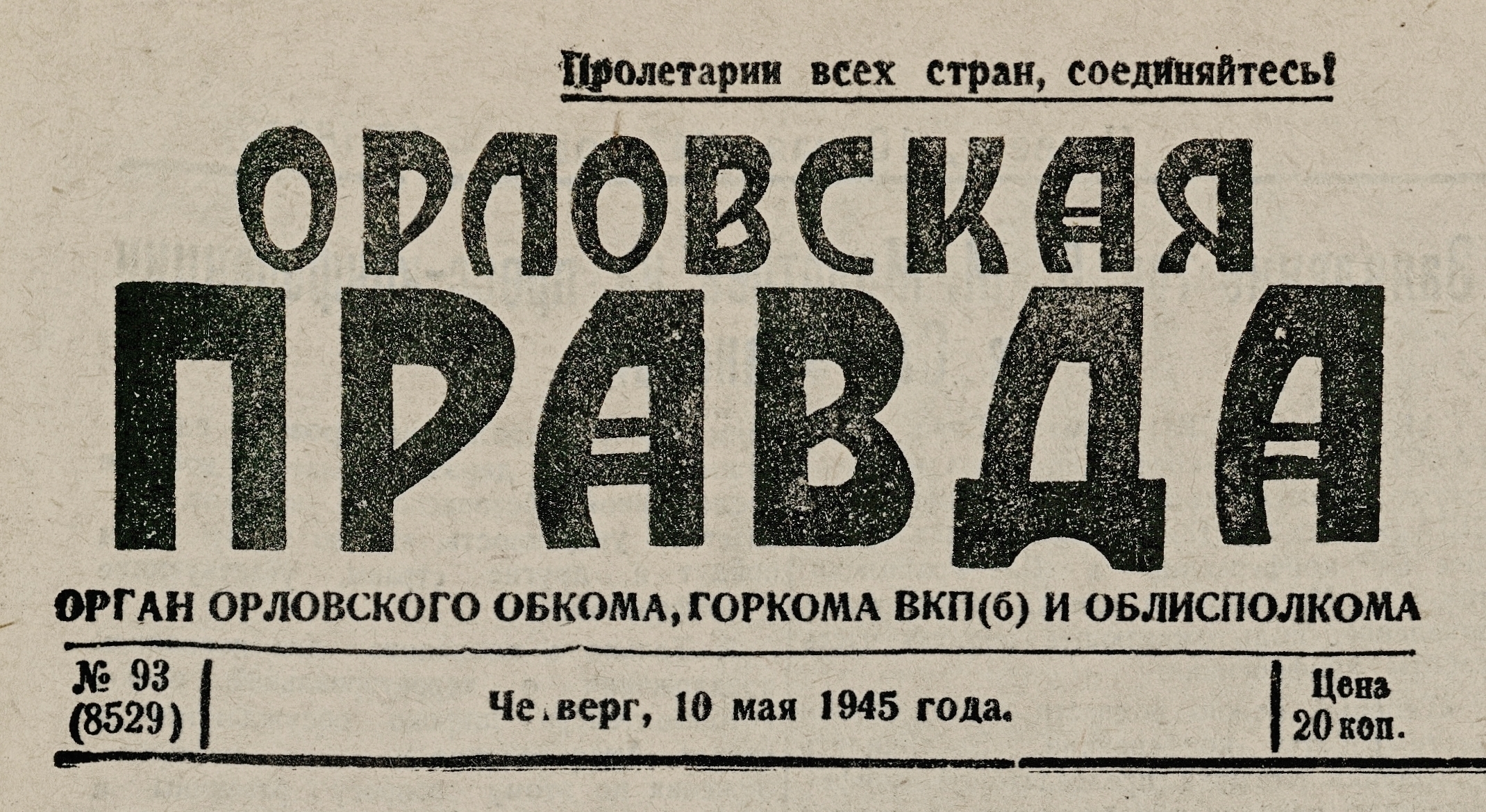 « Орловская правда. – 1945. – 9 мая. – С. 1.