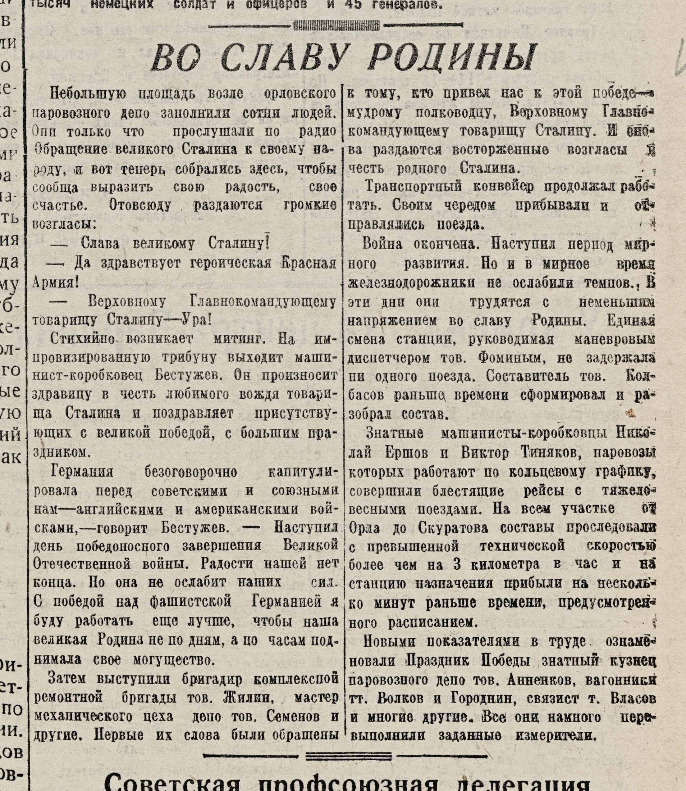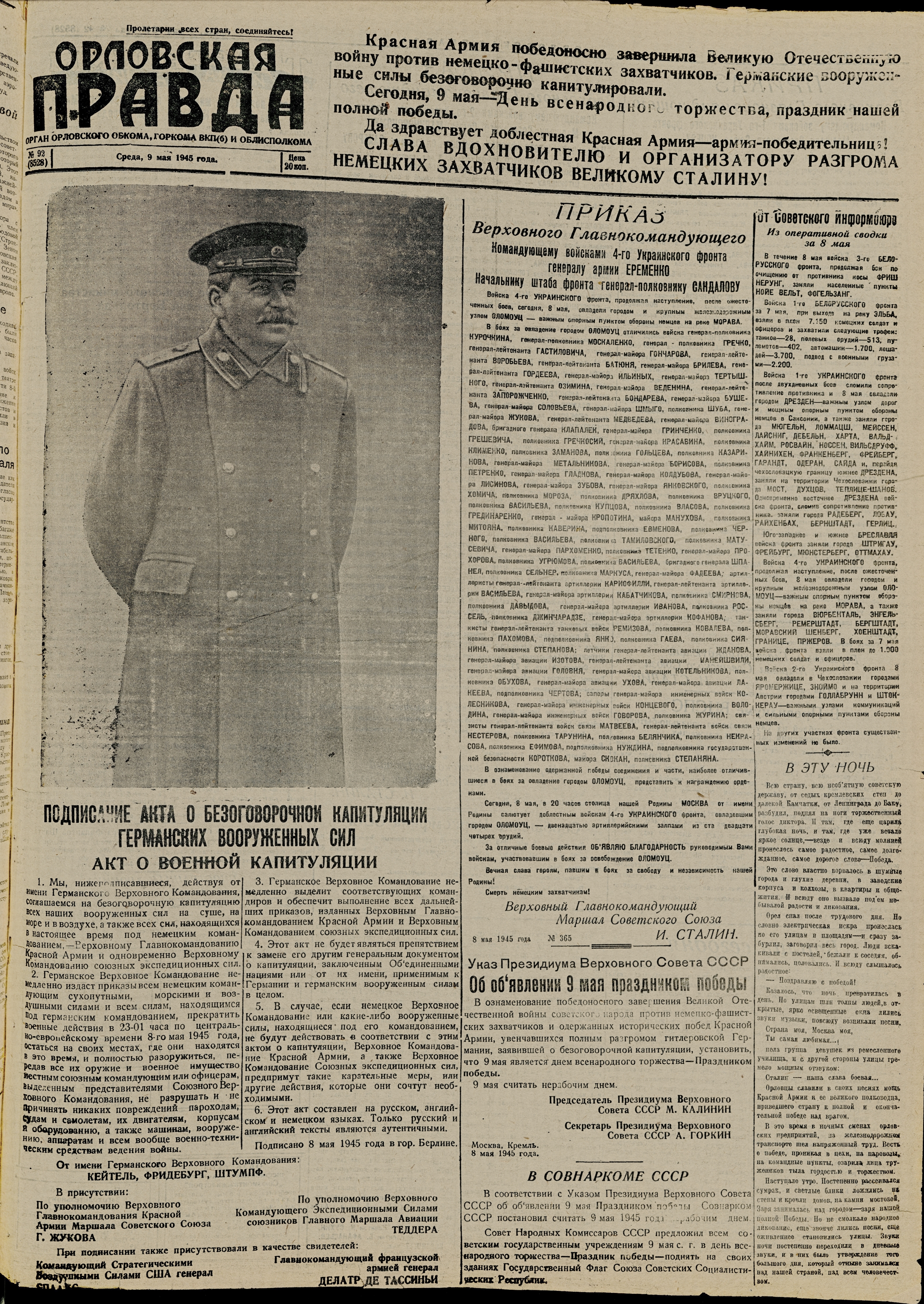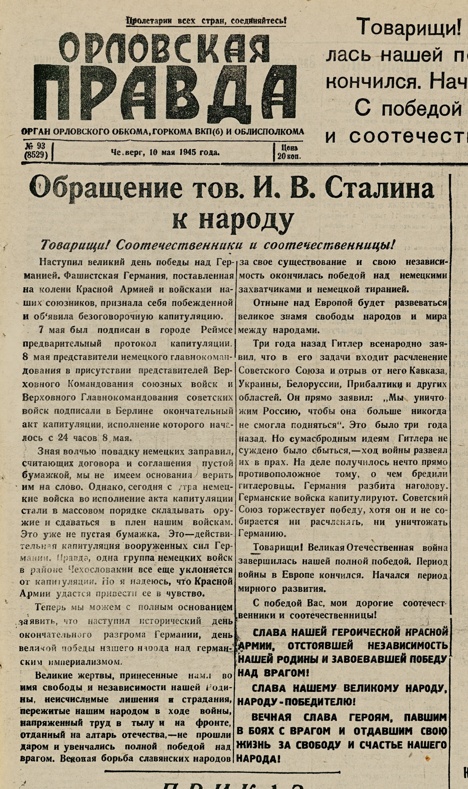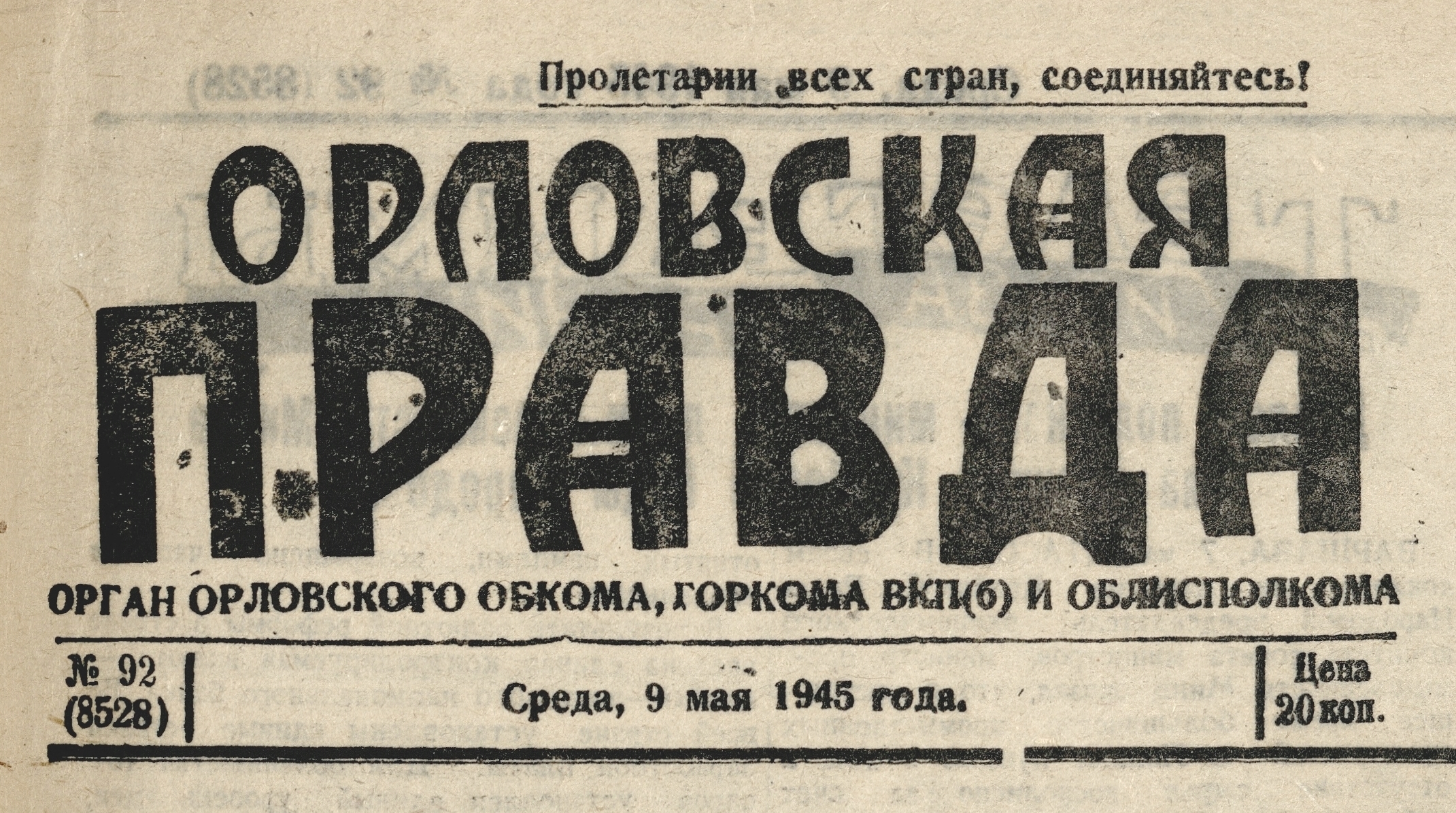« Орловская правда. – 1945. – 9 мая. – С. 1.