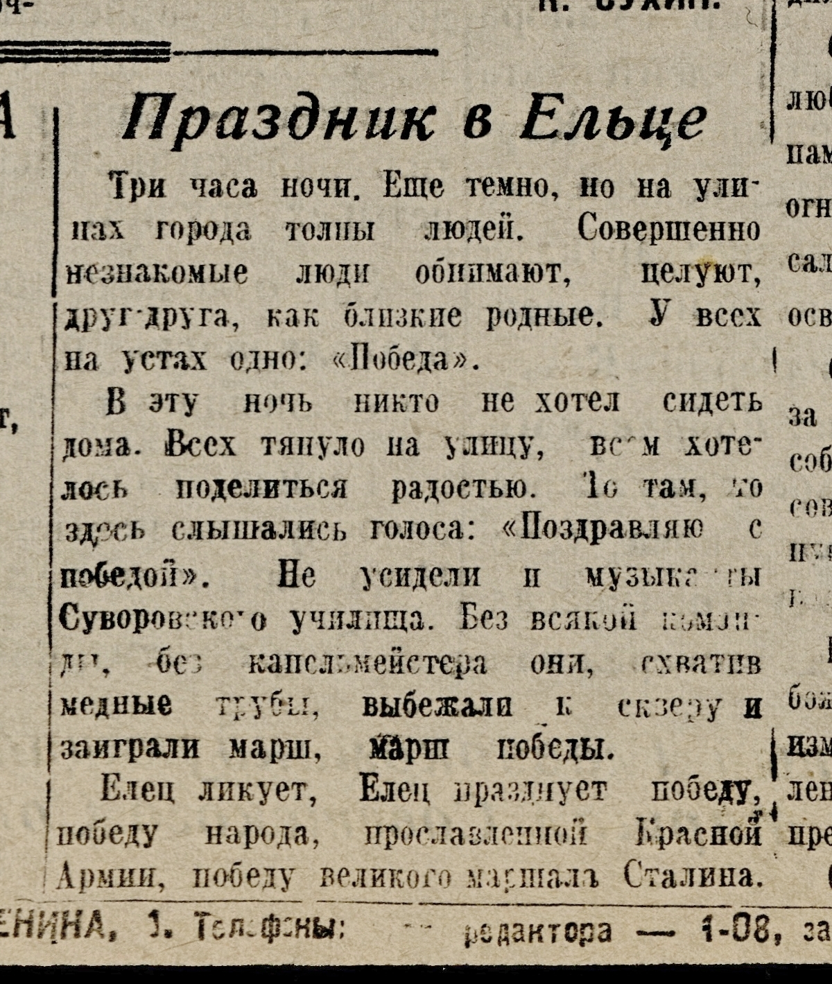 в Ельце // Орловская правда. – 1945. – 10 мая. – С. 2. ![]()