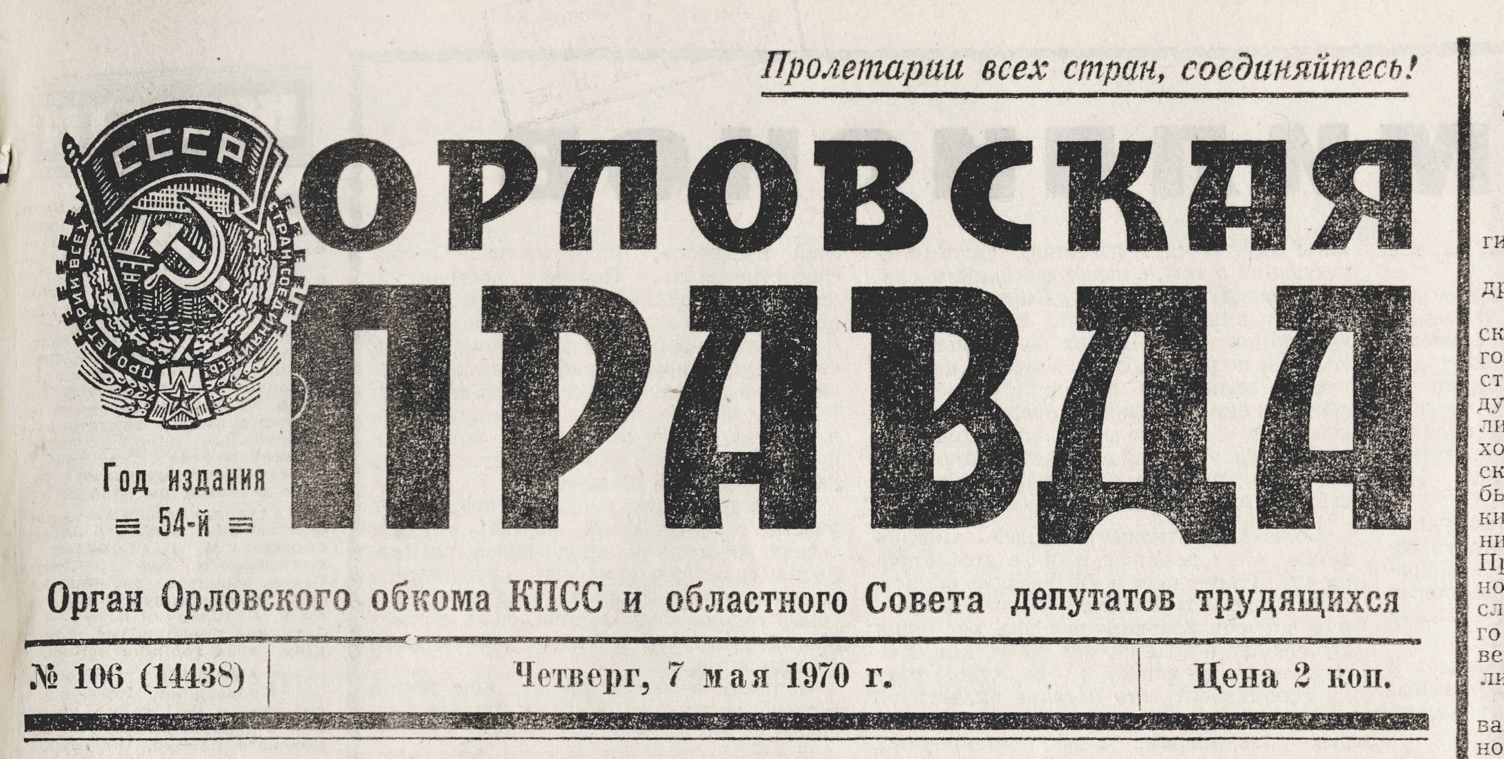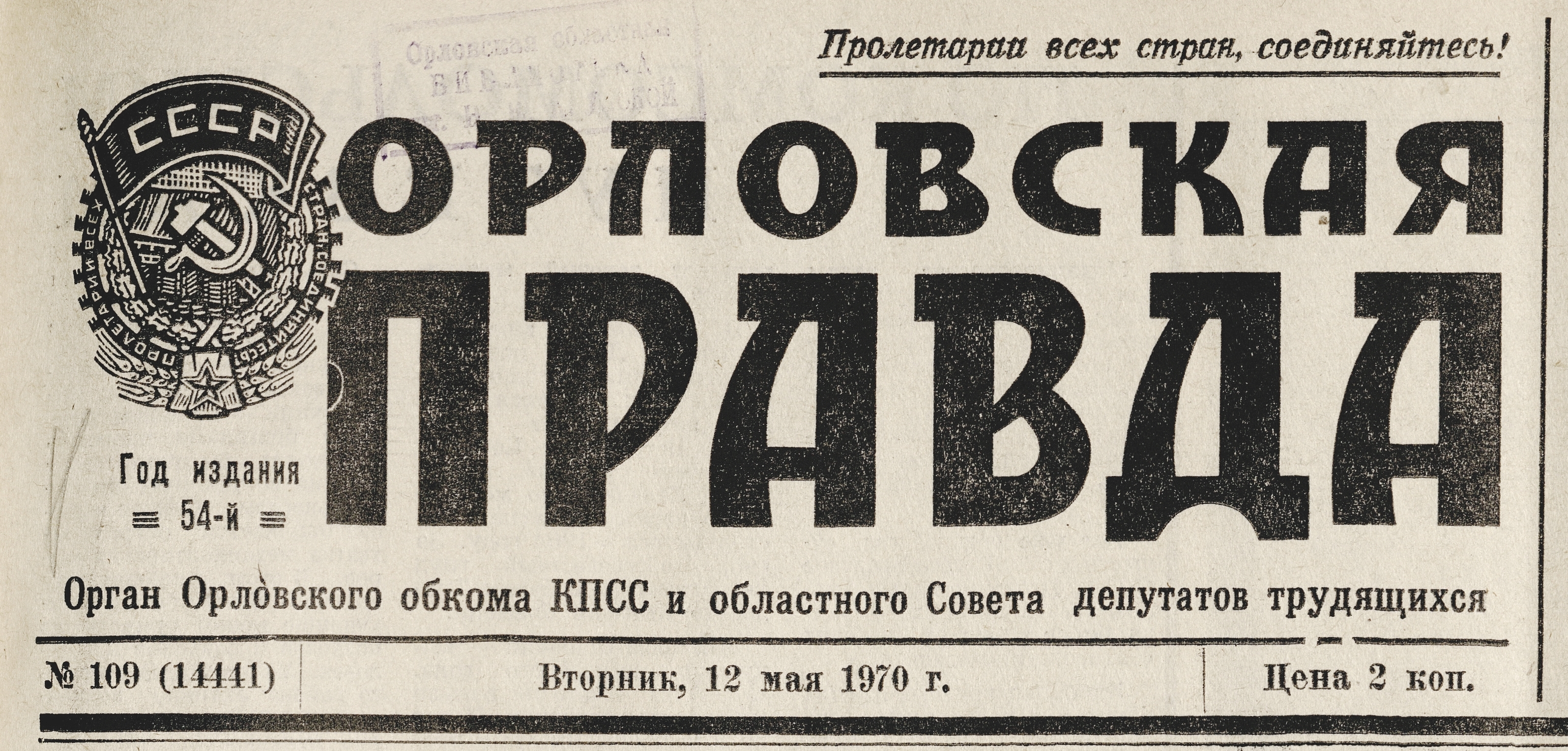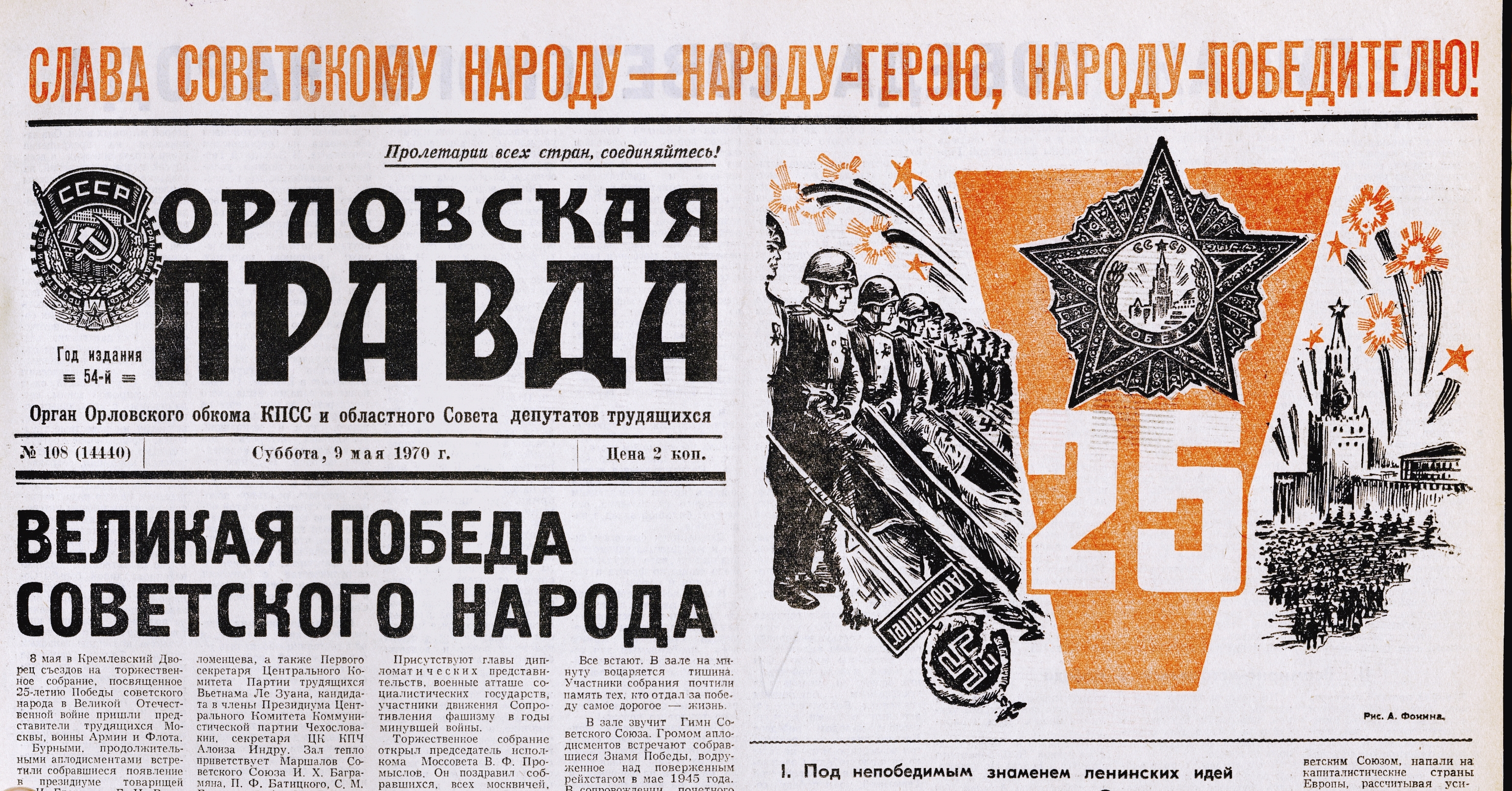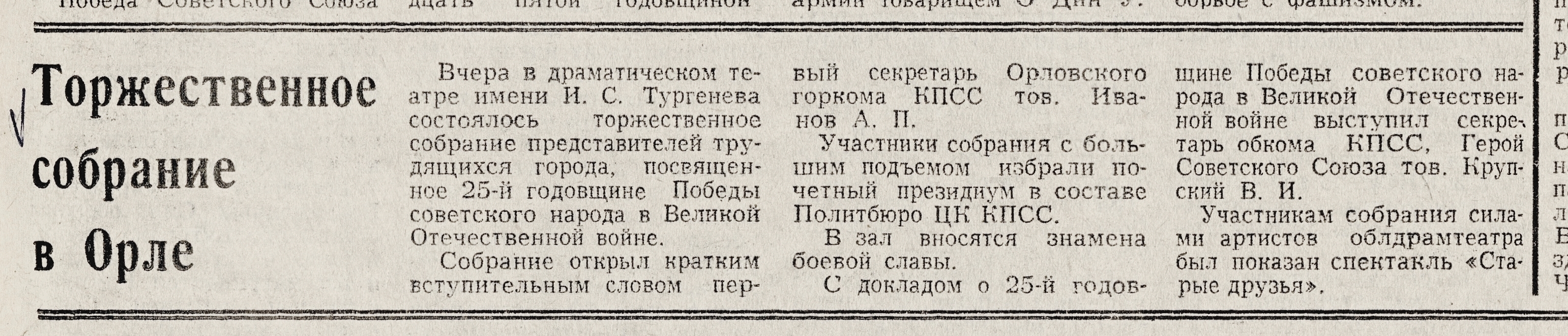 « Торжественное собрание в Орле // Орловская правда. – 1970. – 9 мая. – С. 1.