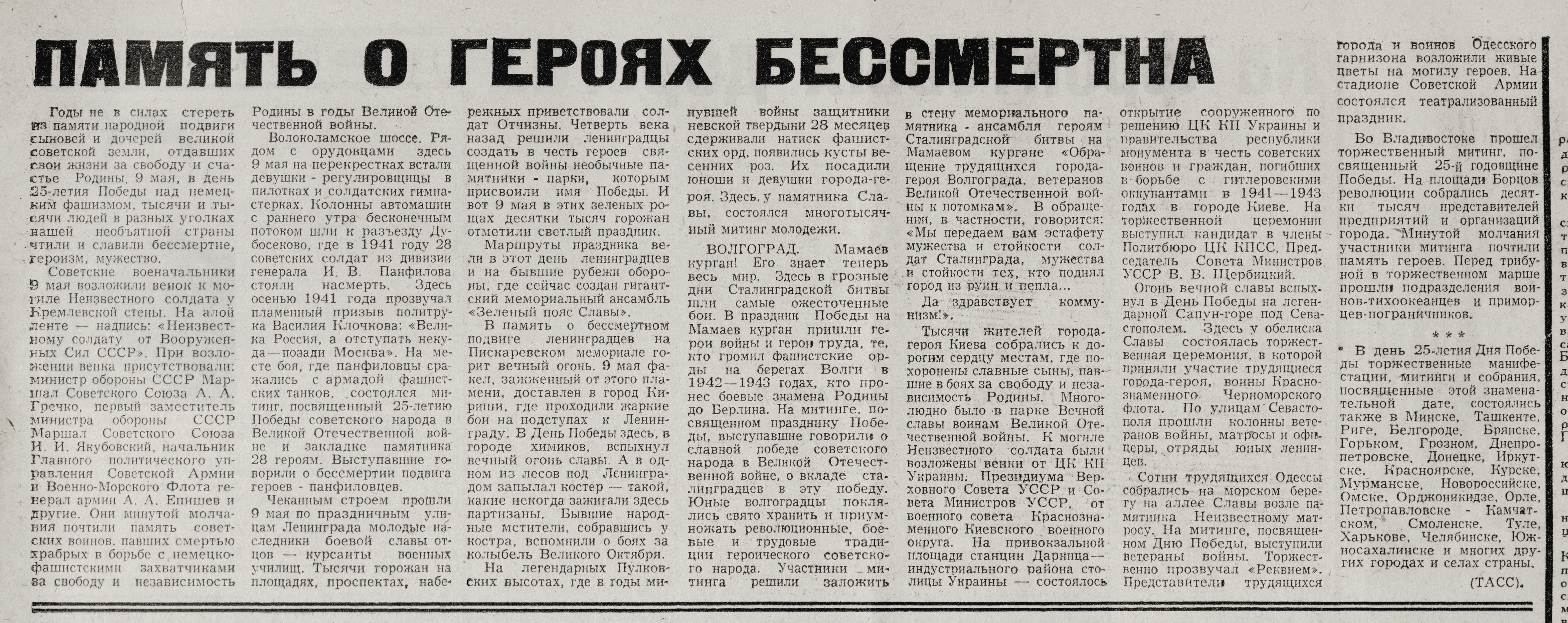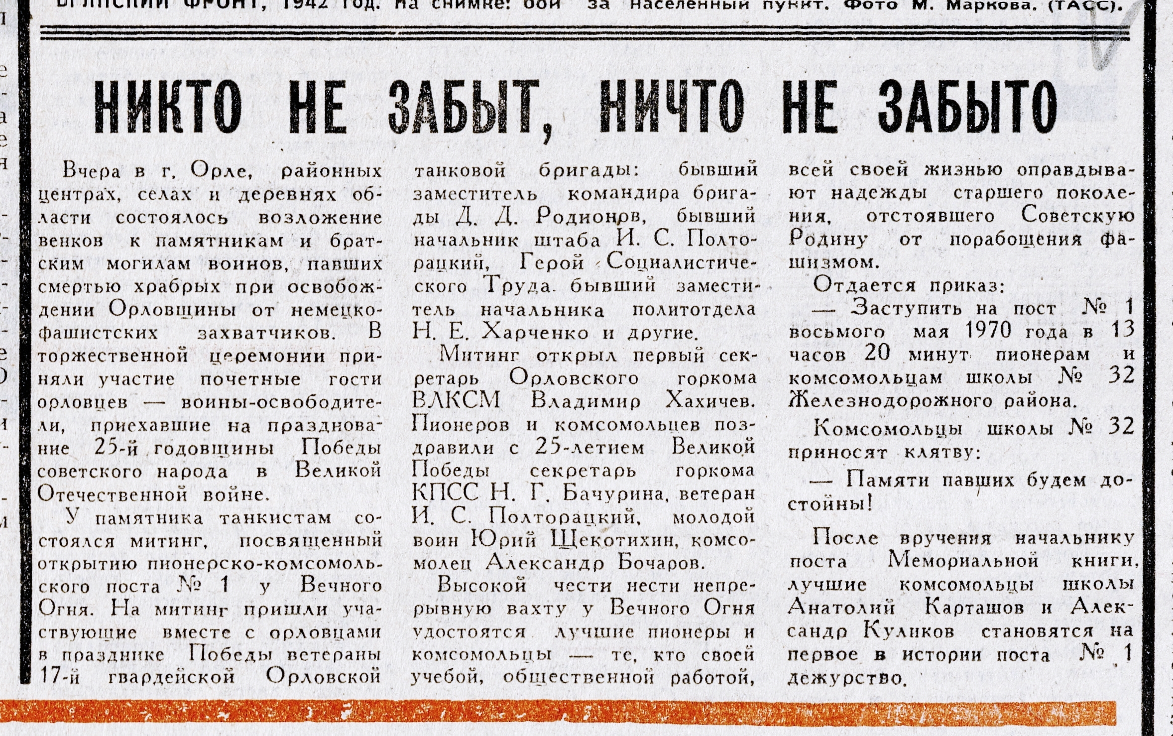 « Никто не забыт, ничто не забыто // Орловская правда. – 1970. – 9 мая. – С. 4.