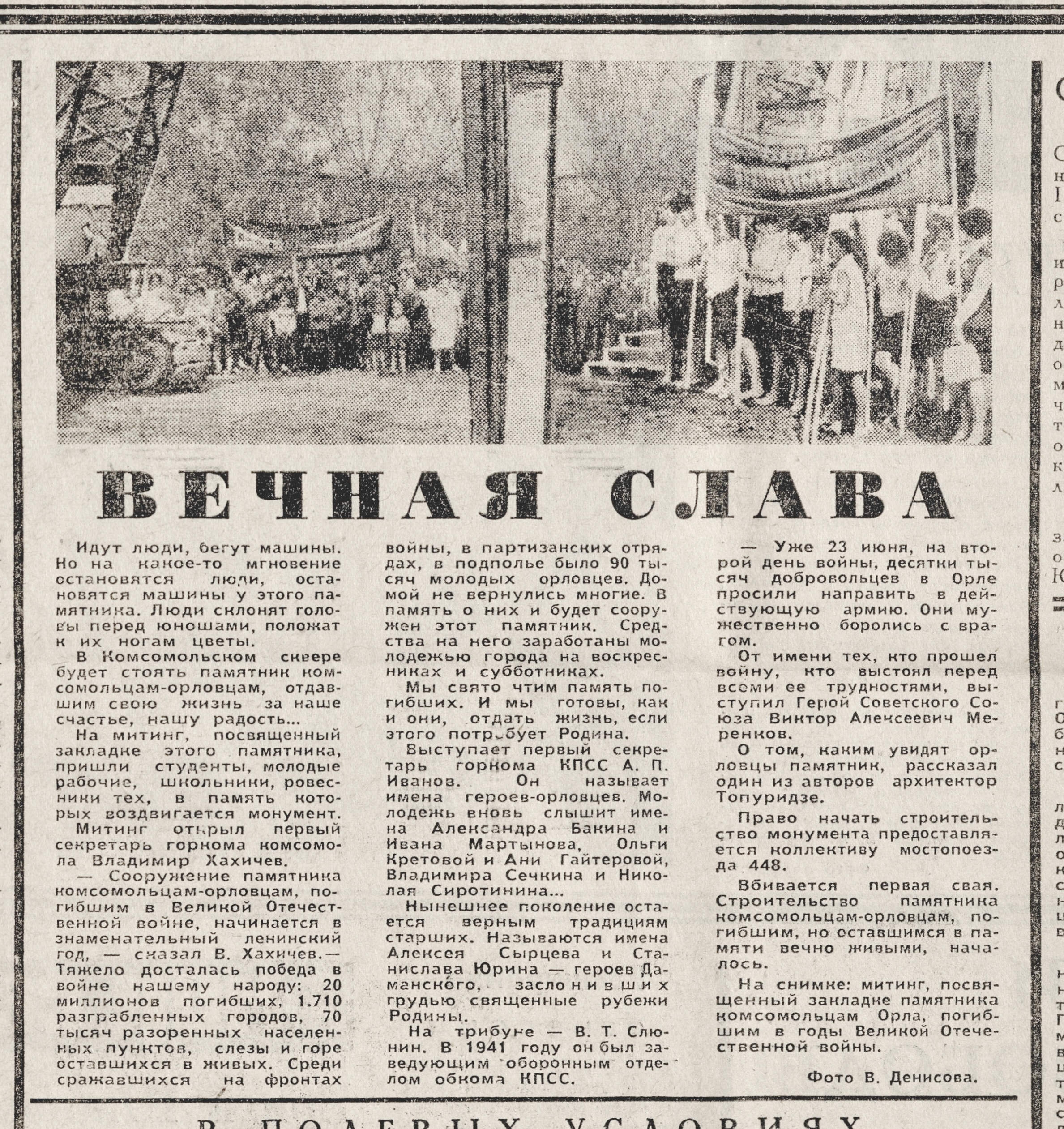 « Вечная слава / фот. В. Денисова // Орловская правда. – 1970. – 12 мая. – С. 4 : фот.