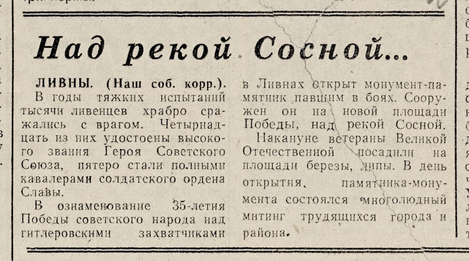 « Над рекой Сосной // Орловская правда. – 1980. – 9 мая. – С. 3.
