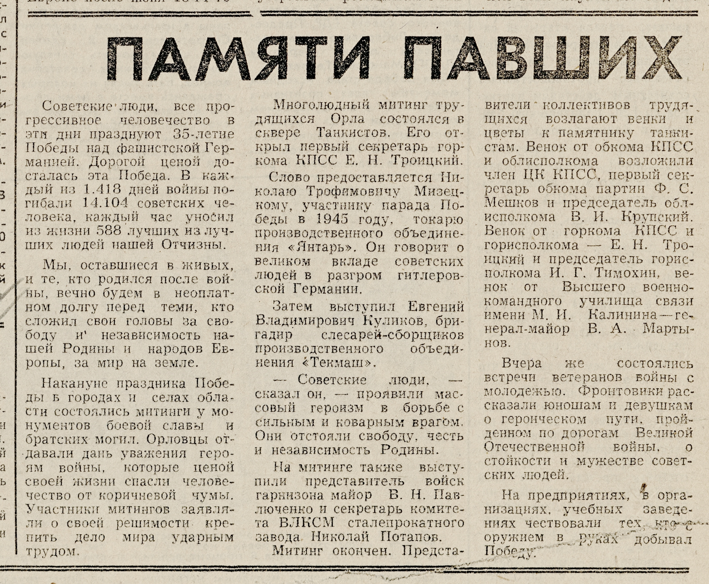 « Памяти павших // Орловская правда. – 1980. – 9 мая. – С. 3.