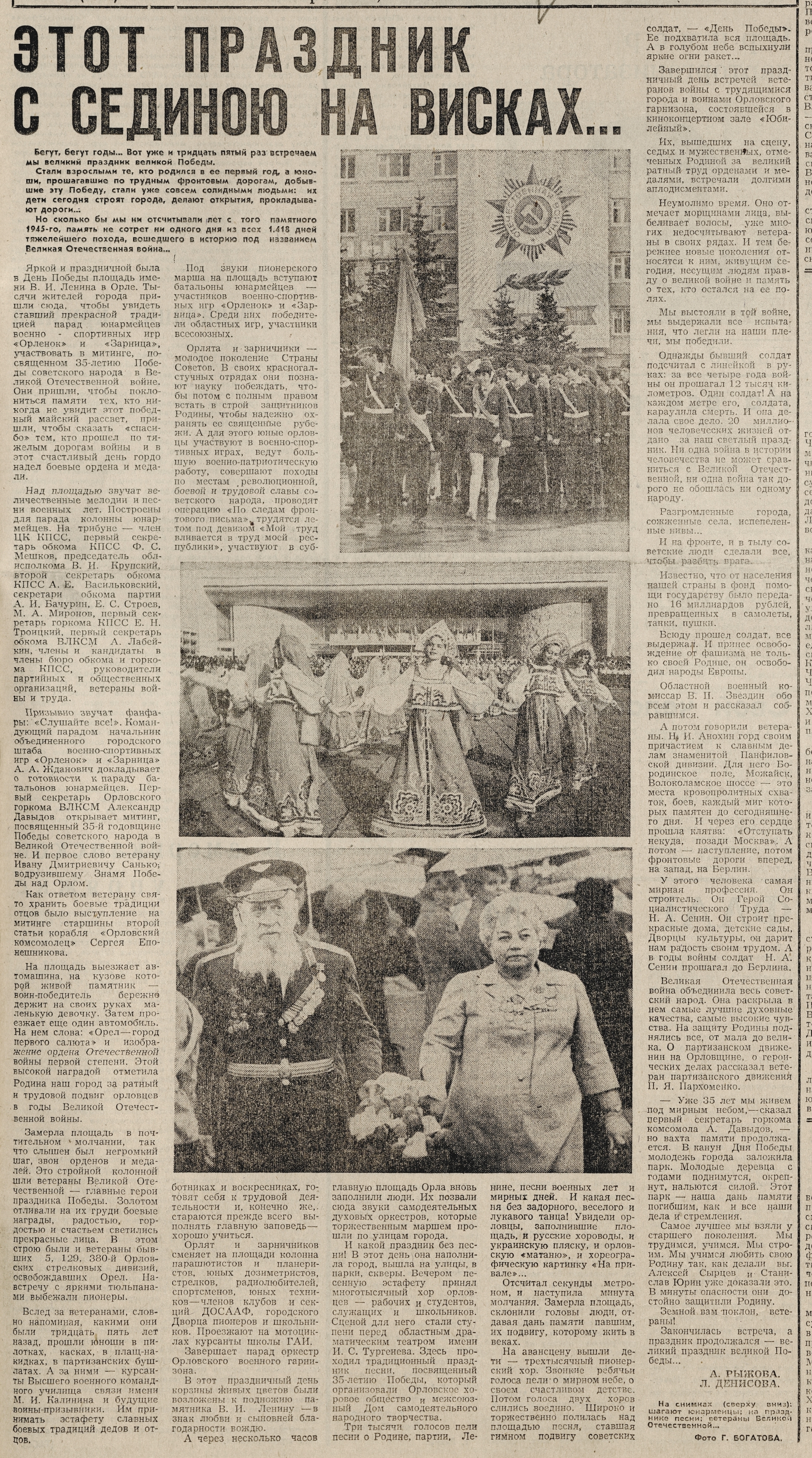 « Рыжова, А. Этот праздник с сединою на висках… / А. Рыжова, Л. Денисова, фот. Г. Богатова // Орловская правда. – 1980. – 11 мая. – С. 1 : фот.